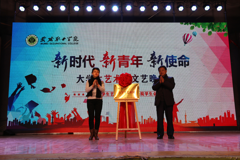 晚會(huì)開(kāi)始前舉行了學(xué)院大學(xué)生藝術(shù)團(tuán)成立揭牌儀式,黨委副書記趙明、副院長(zhǎng)田迎春上臺(tái)為大學(xué)生藝術(shù)團(tuán)揭牌。