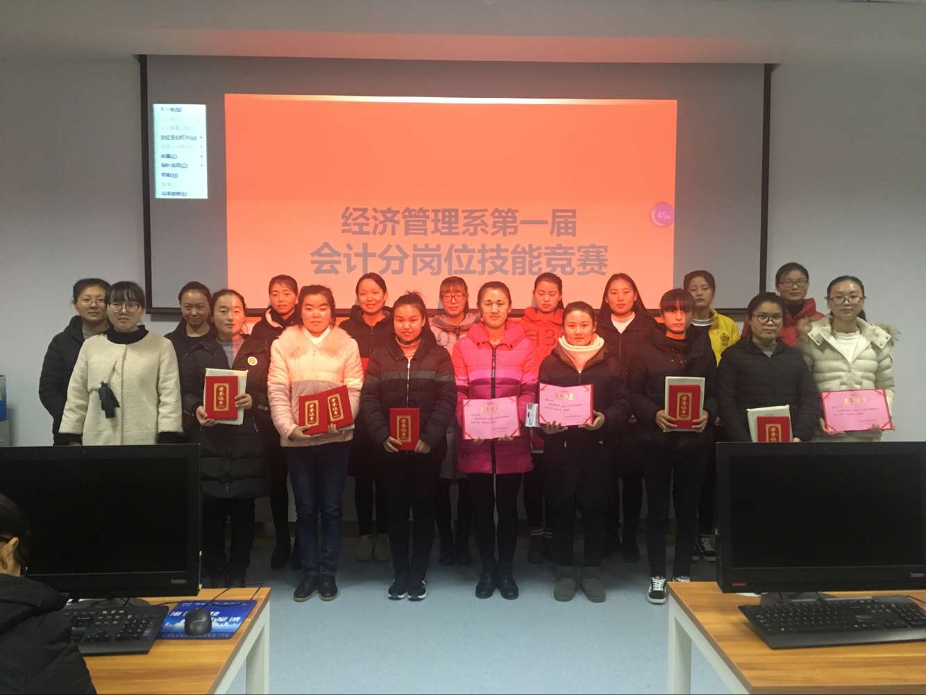 為進(jìn)一步提高會計(jì)專業(yè)學(xué)生的實(shí)踐操作技能,培養(yǎng)學(xué)生的學(xué)習(xí)興趣,調(diào)動學(xué)習(xí)積極性,推動我系實(shí)踐教學(xué)改革,檢驗(yàn)教學(xué)成果,經(jīng)濟(jì)管理系于2018年 1月3日舉辦了第一屆會計(jì)手工分崗位技能大賽。
