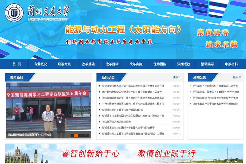 2017年度學(xué)院以平臺建設(shè)為抓手,積極開展專業(yè)建設(shè),取得重大進展,以“深化內(nèi)涵發(fā)展、服務(wù)地方經(jīng)濟”為目標(biāo),積極開展校企合作,取得明顯實效。其中學(xué)院申報的能源與動力工程專業(yè)獲批甘肅省創(chuàng)新創(chuàng)業(yè)試點改革專業(yè);與天合光能有限公司達成協(xié)議由其出資的“思源陽光”基金會每年提供5萬元的創(chuàng)新創(chuàng)業(yè)獎學(xué)金;與北京海瑞克有限公司達成協(xié)議為新能源科學(xué)與工程專業(yè)的優(yōu)秀學(xué)生提供獎學(xué)金;與北京群菱能源科技有限公司達成協(xié)議冠名贊助學(xué)院新能源開發(fā)與利用知識競賽;與蘭州海紅技術(shù)股份有限公司、甘肅建投武威新能源有限公司、中節(jié)能涼州發(fā)電公司等企業(yè)簽訂協(xié)議成立校外教學(xué)實習(xí)基地。