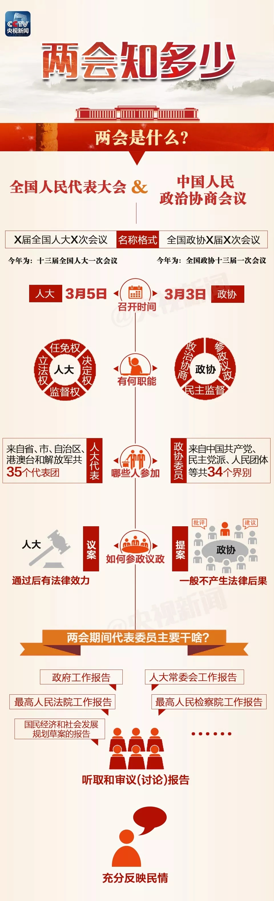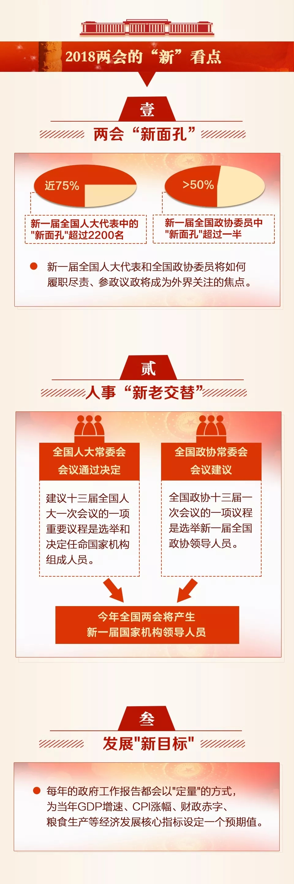 全國兩會年年開,但你知道這兩個“會”有何不同嗎?今年兩會,除了新一屆全國人大代表和全國政協(xié)委員首次亮相之外,又有哪些值得關(guān)注的看點?一起看下面這張圖,提前了解2018年全國兩會。