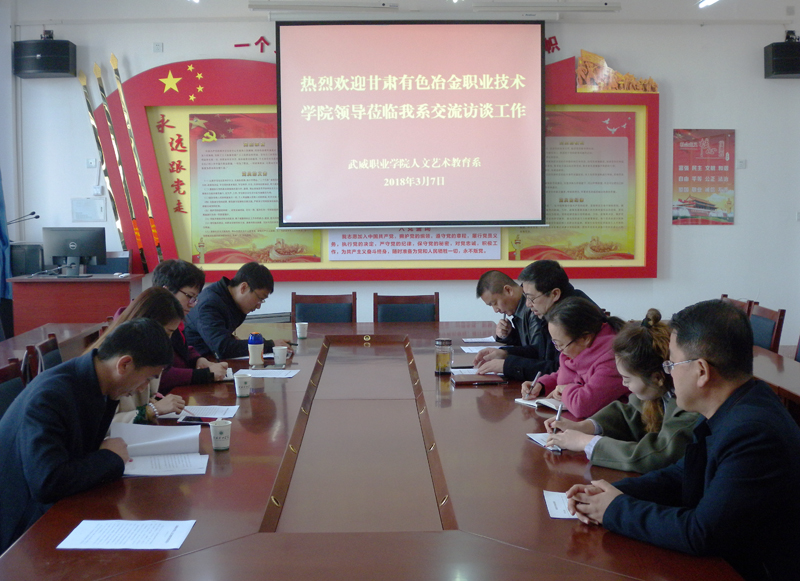 3月7日上午,甘肅有色冶金職業(yè)技術(shù)學(xué)院教育系負(fù)責(zé)人妙學(xué)春一行4人到我系進(jìn)行交流學(xué)習(xí),系黨總支書(shū)記胡靜峰、各教研室主任參加了會(huì)議。