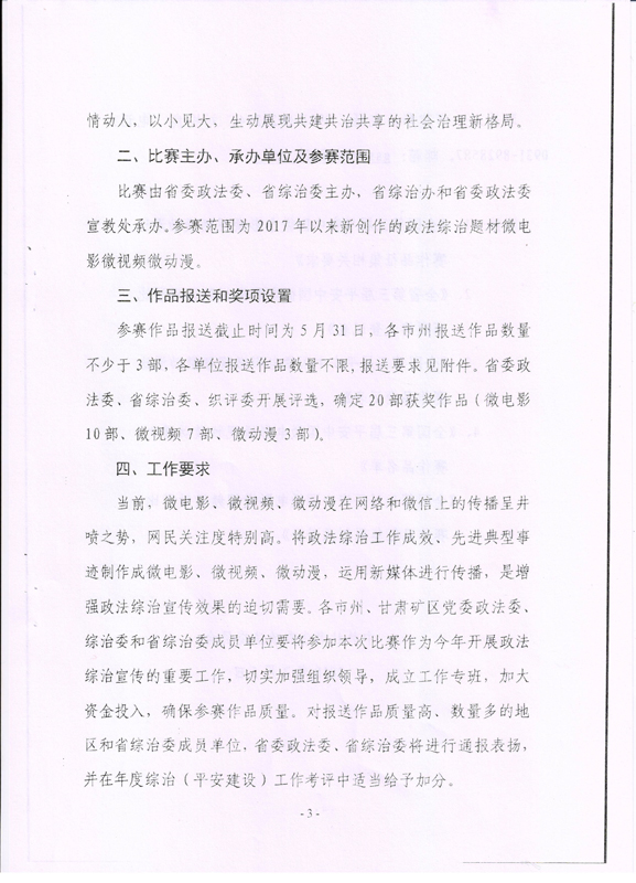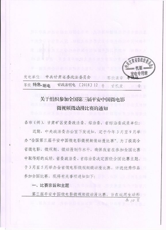 關(guān)于組織參加全國(guó)第三屆平安中國(guó)微電影微視頻微動(dòng)漫比賽的通知