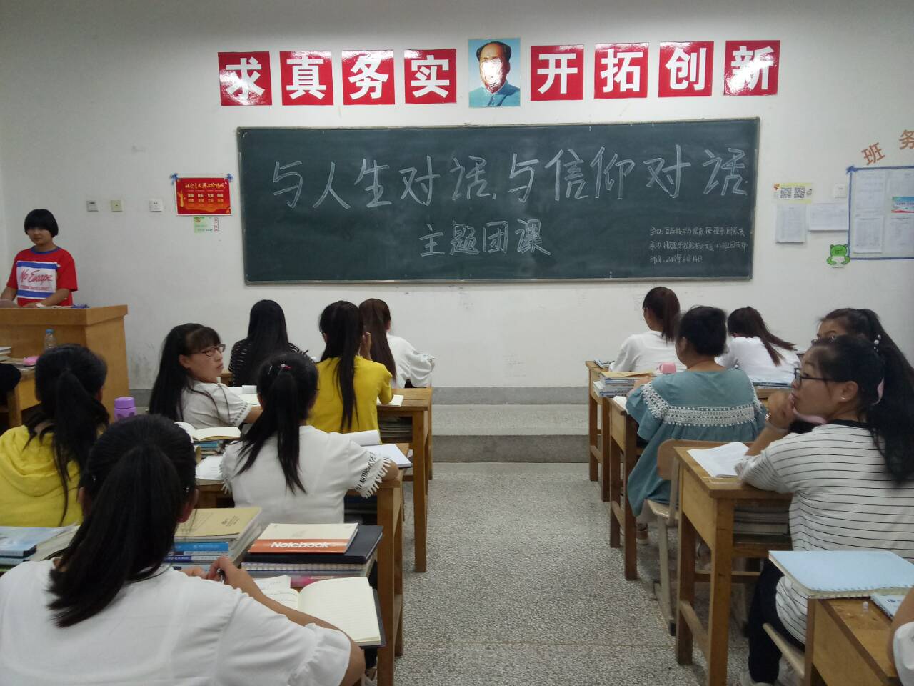 為了引導(dǎo)青年學生提高思想道德修養(yǎng),找準人生方向和成長道路,培育和踐行社會主義核心價值觀,醫(yī)學技術(shù)與信息管理系于2018年6月14日在各班教室進行了“與人生對話與信仰對話”的主題團課,旨在提高同學們的政治素養(yǎng),進一步濃郁班級文化氛圍、激發(fā)同學們讀書求知的熱情。