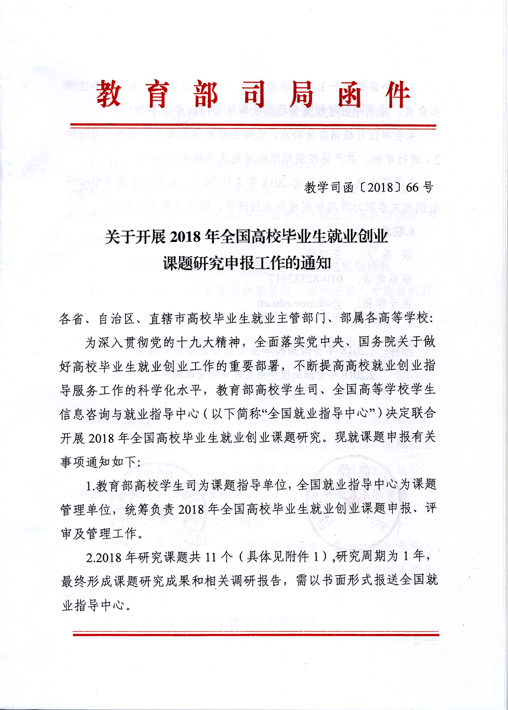 關于開展2018年全國高校畢業(yè)生就業(yè)創(chuàng)業(yè)課題研究申報工作的通知(附件1、附件2)