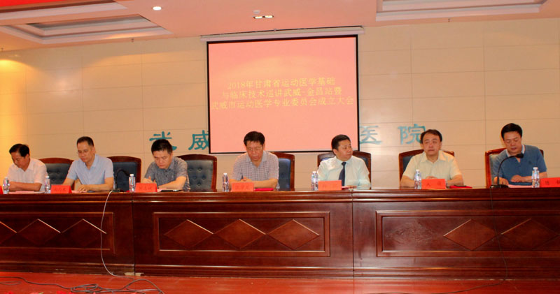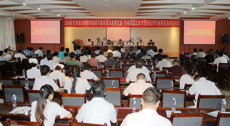 由甘肅省醫(yī)學(xué)會運(yùn)動醫(yī)學(xué)專業(yè)委員會主辦,學(xué)院直屬附屬醫(yī)院承辦的“2018年甘肅省運(yùn)動醫(yī)學(xué)基礎(chǔ)與臨床技術(shù)巡講暨武威市運(yùn)動醫(yī)學(xué)專業(yè)委員會成立大會”于7月7日早上8點(diǎn)30分,在學(xué)院直屬附屬醫(yī)院內(nèi)科七樓會議大廳隆重舉行。