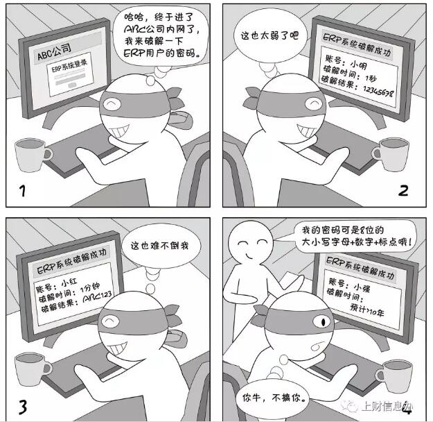 密碼越復雜,破解難度越高,而且這個比例是成指數(shù)級的,簡單6位數(shù)字密碼秒破,而8位復雜密碼的破解需要20年以上。