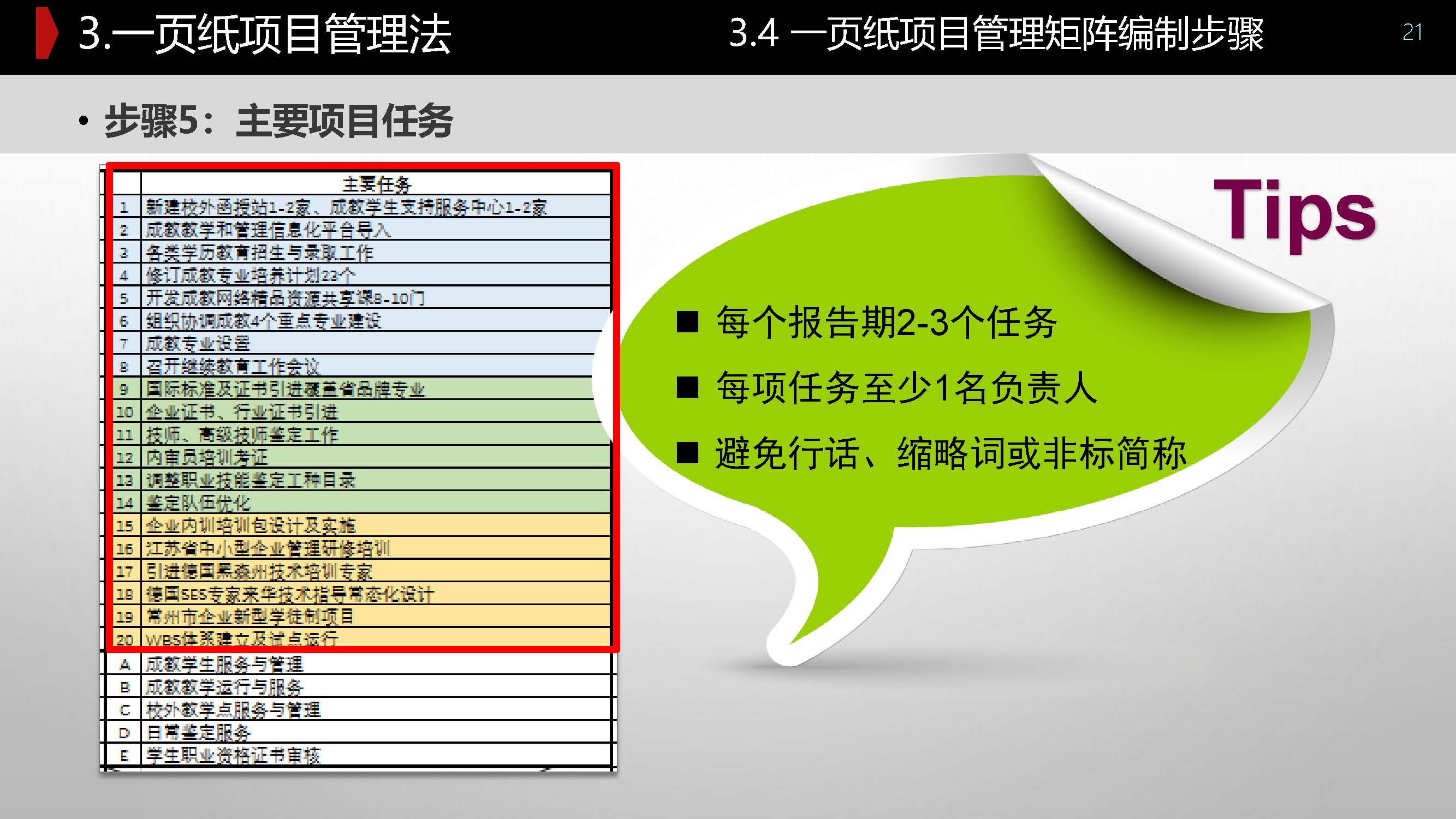-- “一頁紙項目管理法”在年度任務分解中的應用