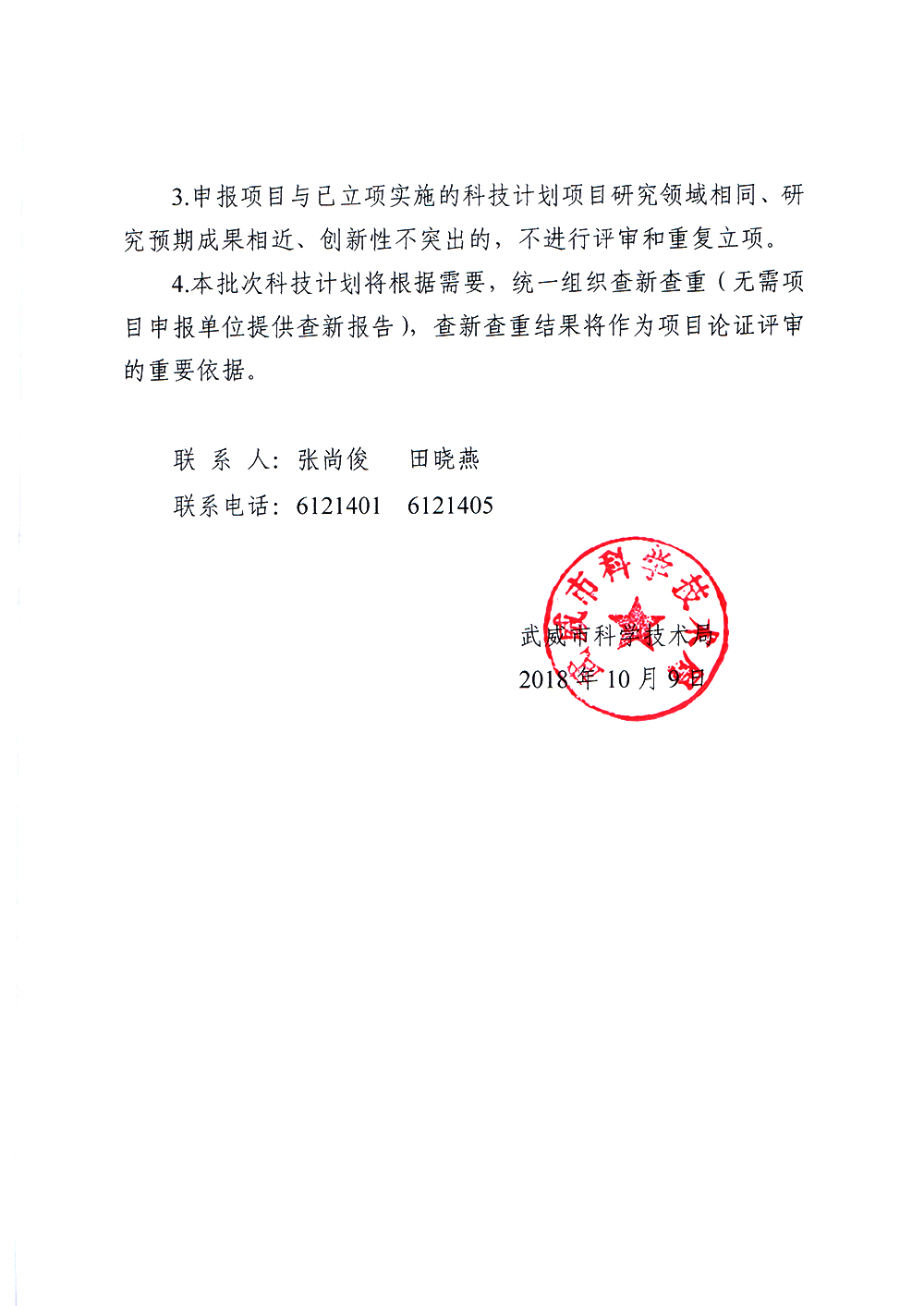 轉發(fā)武威市科學技術局關于組織申報2018年度第二批科技計劃項目的通知