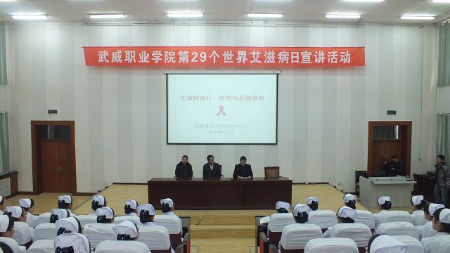 12月1日被世界衛(wèi)生組織確立為“世界艾滋病日”。在第29個“世界艾滋病日”來臨之際,學院聯(lián)合武威市衛(wèi)計委、武威市疾控中心等多家單位,舉辦了主題為“攜手抗艾、重在預(yù)防”的系列宣傳活動,通過艾滋病知識講座、主題演講比賽、萬人簽名儀式等活動,宣傳普及了艾滋病預(yù)防知識,提高了學院師生對艾滋病防治工作的認識,為營造關(guān)心關(guān)愛艾滋病病人和感染者以及防治艾滋病創(chuàng)造了良好的社會氛圍。