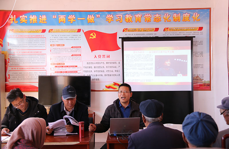 王永緒副教授以《榜樣3》專題片入手,以黨的十九大主題“不忘初心,牢記使命,高舉中國特色社會主義偉大旗幟,決勝全面建成小康社會,奪取新時代中國特色社會主義偉大勝利,為實現(xiàn)中華民族偉大復興的中國夢不懈奮斗”為主題,通過詳細講述蓋買村黨支部書記李元敏、只為百姓笑——魯家村黨委書記朱仁斌典型事跡,分享自己入黨初心,總結了虛心學習榜樣人物恪盡職守、敢于擔當?shù)木?,甘于奉獻、勇于犧牲的崇高境界,淡泊名利、清廉自守的道德情操。最后希望,尚家臺村黨員干部要著力講好新時代自己的故事,靠一步一個腳印苦干加巧干,靠父老鄉(xiāng)親的支持,用平凡行動踐行脫貧致富深刻道理,樹立身邊的先進典型模范事跡,詮釋黨的崇高理想,展現(xiàn)共產(chǎn)黨人不忘初心、牢記使命的執(zhí)著堅守,彰顯共產(chǎn)黨人信仰堅定、心系群眾、勇于擔當、創(chuàng)新奉獻的精神風貌,讓美麗鄉(xiāng)村建設的最終成果就是讓農(nóng)民富起來、笑起來。