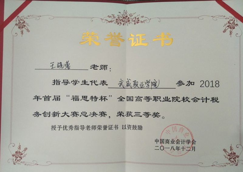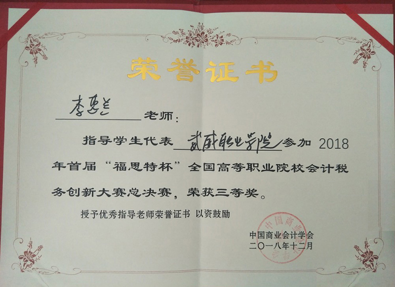 本次比賽得到學(xué)院領(lǐng)導(dǎo)、系領(lǐng)導(dǎo)的高度重視與大力支持。經(jīng)濟(jì)管理系專門成立了輔導(dǎo)小組,嚴(yán)格按照國賽要求進(jìn)行實(shí)戰(zhàn)訓(xùn)練。近年來,經(jīng)濟(jì)管理系參加各級(jí)各類會(huì)計(jì)技能競賽,適時(shí)修訂會(huì)計(jì)人才培養(yǎng)方案,提升學(xué)生動(dòng)手實(shí)踐能力,培養(yǎng)學(xué)生的職業(yè)核心和專業(yè)崗位能力。做到技能競賽與教學(xué)改革、人才培養(yǎng)相輔相成、相得益彰,使學(xué)生團(tuán)隊(duì)合作能力、創(chuàng)新思維能力、職業(yè)能力不斷加強(qiáng),實(shí)現(xiàn)了“以賽促教、以賽促學(xué)、以賽促改”的預(yù)期效果。經(jīng)濟(jì)管理系將以此為契機(jī),不斷提高人才培養(yǎng)質(zhì)量,為學(xué)院優(yōu)質(zhì)院校建設(shè)增磚添瓦。
