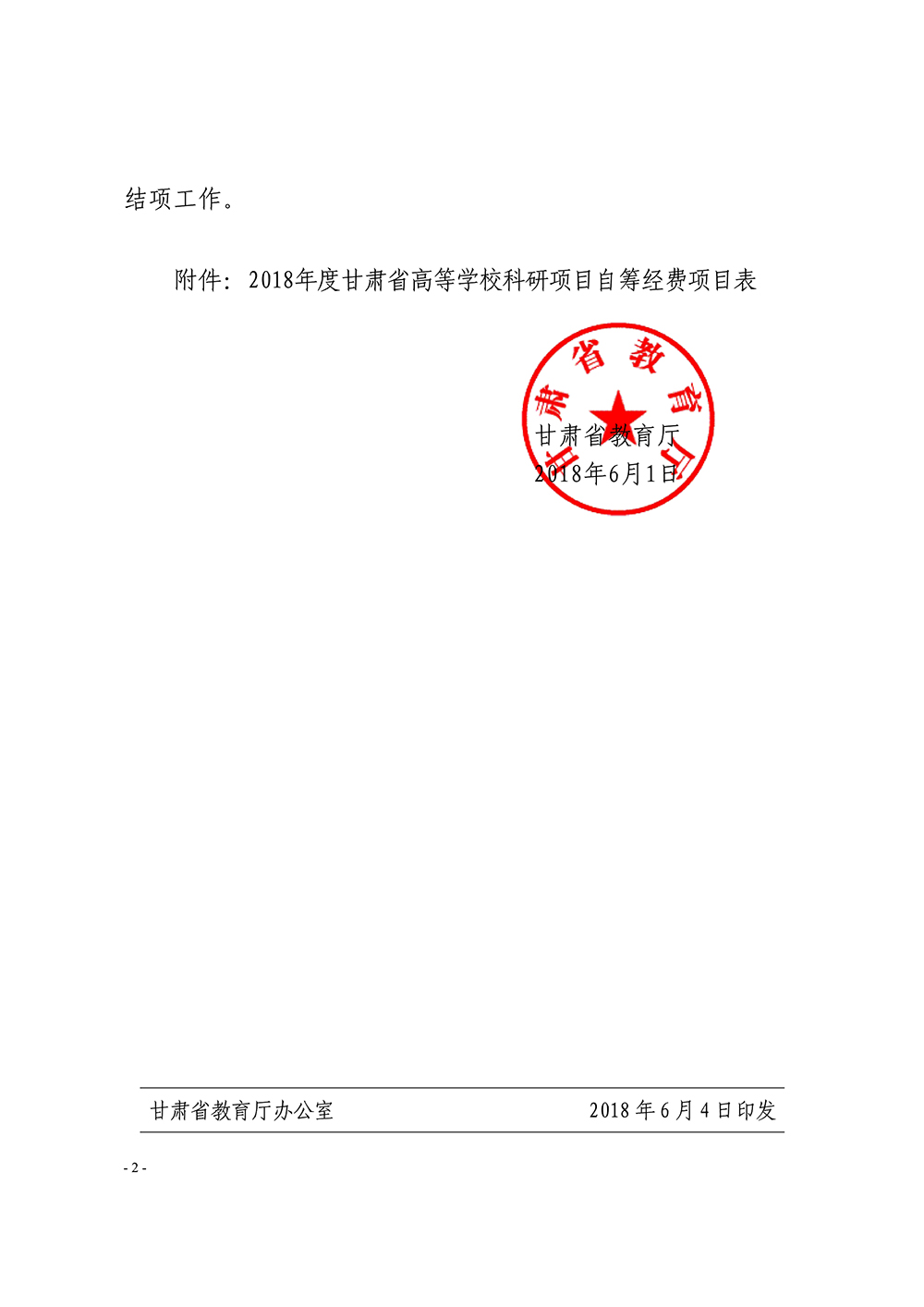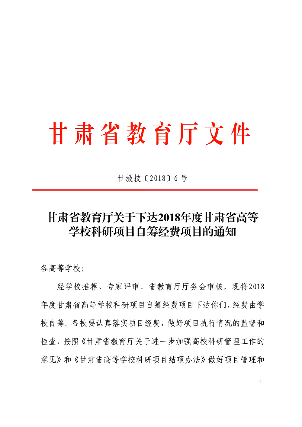 甘肅省教育廳關(guān)于下達(dá)2018年度甘肅省高等學(xué)校科研項(xiàng)目自籌經(jīng)費(fèi)項(xiàng)目的通知