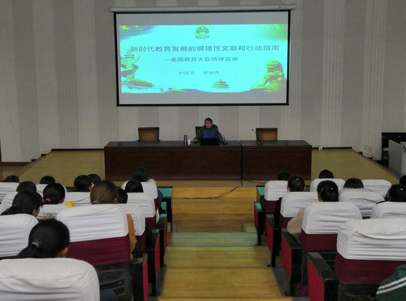 為深入做好全國教育大會(huì)精神宣講工作,根據(jù)學(xué)院安排12月24日護(hù)理系主任韓曉萍在正德廳為護(hù)理系200余人進(jìn)行全國教育大會(huì)精神宣講。