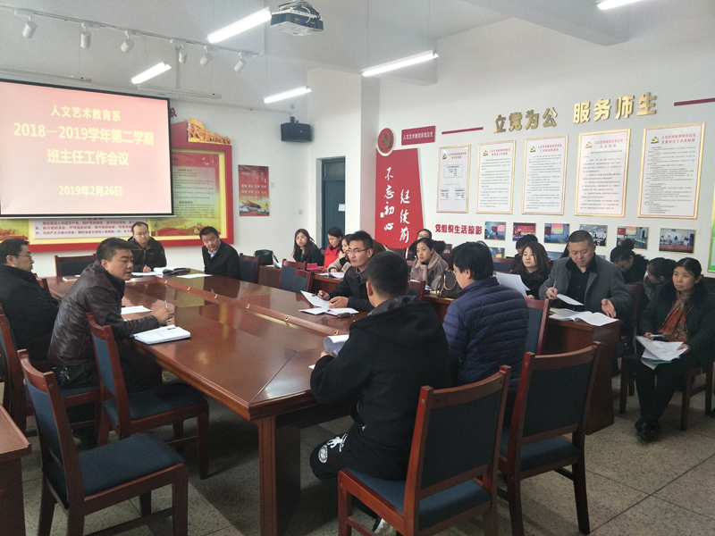 2月26日,人文藝術(shù)教育系全體班主任和學(xué)生工作管理人員在勵(lì)勤樓209會(huì)議室,召開(kāi)新學(xué)期學(xué)生管理工作會(huì)議,會(huì)議由系黨總支書(shū)記胡靜峰同志主持,系副主任李欣做具體工作安排。