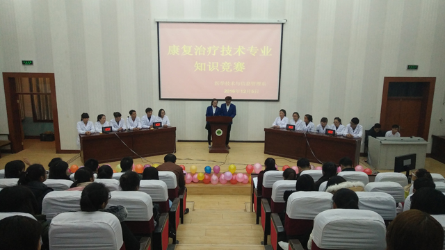 為加強(qiáng)學(xué)風(fēng)建設(shè),鞏固特色專業(yè)建設(shè)成果,增強(qiáng)同學(xué)們對專業(yè)知識的了解,培養(yǎng)同學(xué)們的思維能力、創(chuàng)新能力,提高學(xué)生的競爭力,125日晚,醫(yī)學(xué)技術(shù)與信息管理系在尚德樓正德廳舉行康復(fù)治療技術(shù)專業(yè)知識競賽。學(xué)院基建處處長周興全,系主任楊如松,學(xué)生工作負(fù)責(zé)人魏曙光,院團(tuán)委馬琪老師,系政治輔導(dǎo)員,康復(fù)治療技術(shù)專業(yè)教研室主任、任課教師及全體班主任、學(xué)生代表參加本次活動。