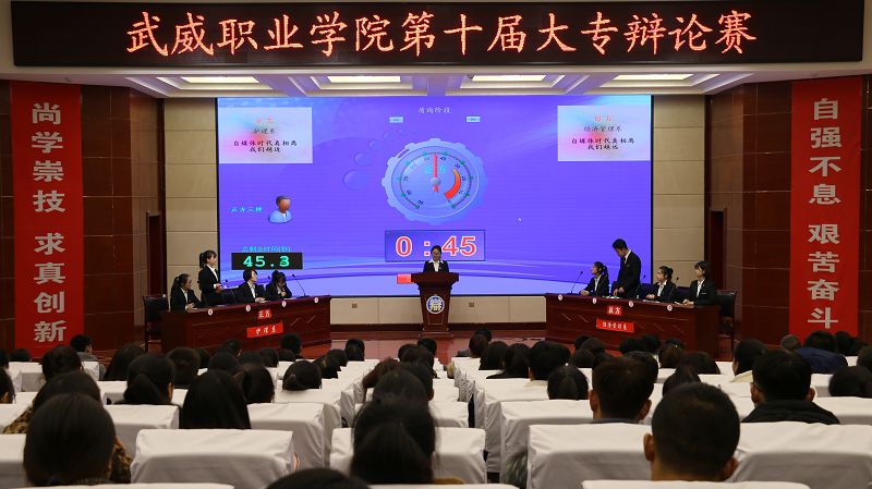 為深入學習貫徹落實習近平新時代中國特色社會主義思想和黨的十九大精神,拓展大學生思辨能力,培養(yǎng)學生的團隊合作精神,展現我院青年學生昂揚向上的青春風采和精神風貌,院團委舉辦了學院第十屆大專辯論賽。12月13日晚,辯論賽決賽在大學生活動中心菁英廳舉行,辦公室主任張開禮、宣傳統戰(zhàn)部部長王繼林、學生工作處處長王守云、護理系黨總支書記張建輝、經濟管理系主任張伯成出席比賽,工會主席金玉龍、創(chuàng)新創(chuàng)業(yè)中心主任胡建宏、教務處副處長張世亮、招生就業(yè)處副處長董鵬、團委負責人高鵬堂擔任比賽評委,200多名辯論愛好者觀看了比賽。