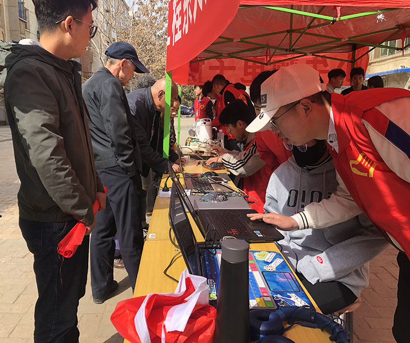 3月23日上午,我系小牛頓電子協(xié)會和計算機(jī)協(xié)會的志愿者們,來到泰安小區(qū)開展了以“發(fā)揚(yáng)雷鋒精神,科技服務(wù)進(jìn)社區(qū)”為主題的家電、電腦義務(wù)維修活動。志愿者們對小區(qū)居民送來的電水壺、電飯煲、微波爐、影碟機(jī)等家電進(jìn)行了維修,受到了小區(qū)居民的歡迎。志愿者們還不辭辛苦,上門對有故障的電腦進(jìn)行重裝系統(tǒng)、更新驅(qū)動等服務(wù),師生們認(rèn)真負(fù)責(zé)、一絲不茍的精神得到了居民們的贊許。