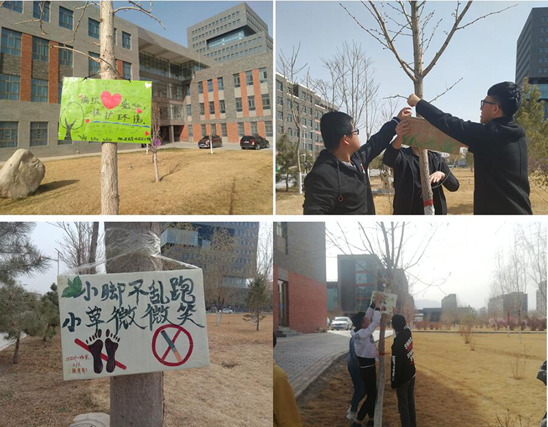 為助力創(chuàng)建文明城市,構(gòu)建文明綠色環(huán)保校園,4月2日建筑工程系學(xué)生分會(huì)聯(lián)合各班級(jí)在環(huán)境區(qū)域設(shè)立愛護(hù)校園草坪的標(biāo)語(yǔ)牌活動(dòng)。