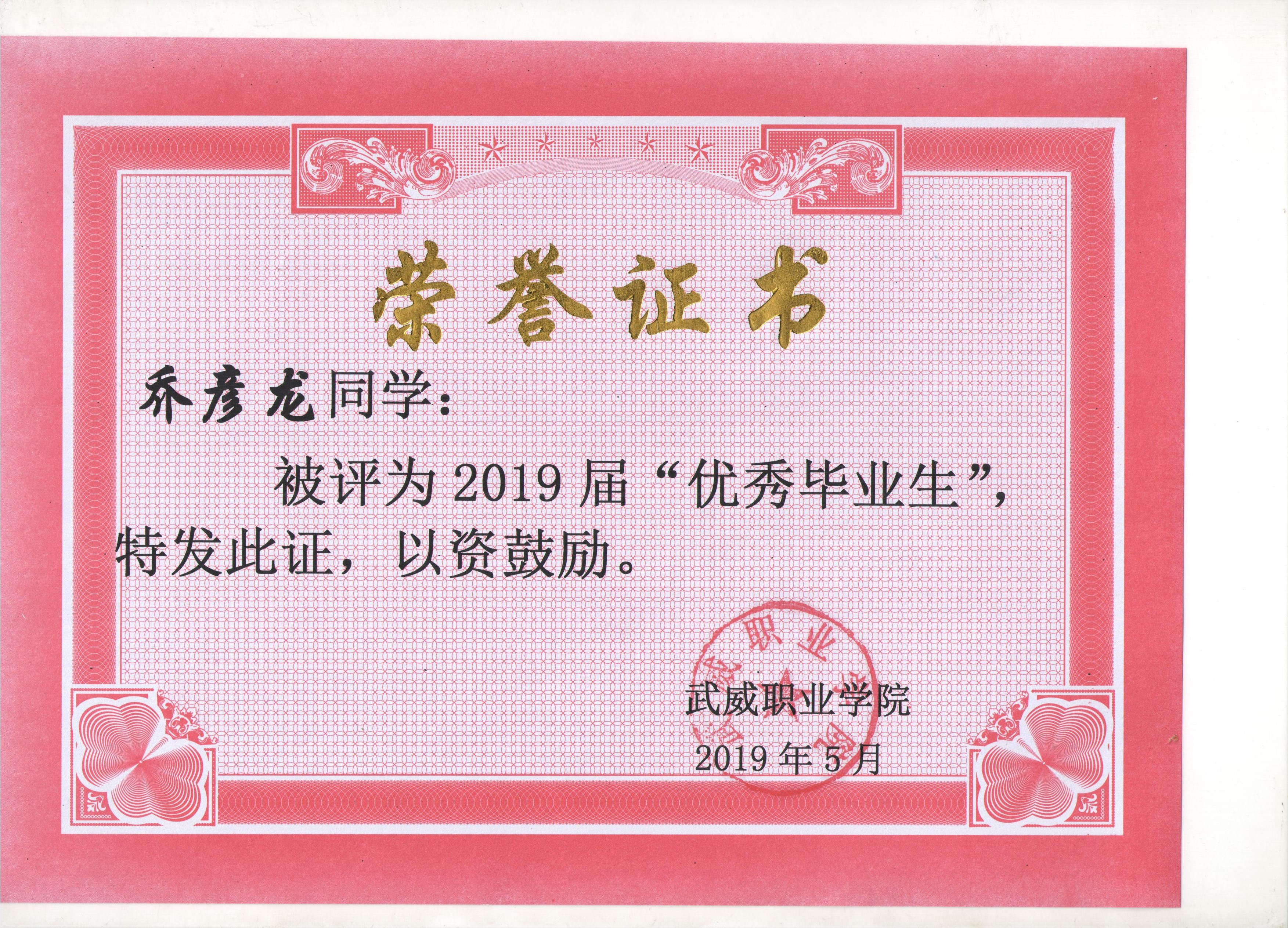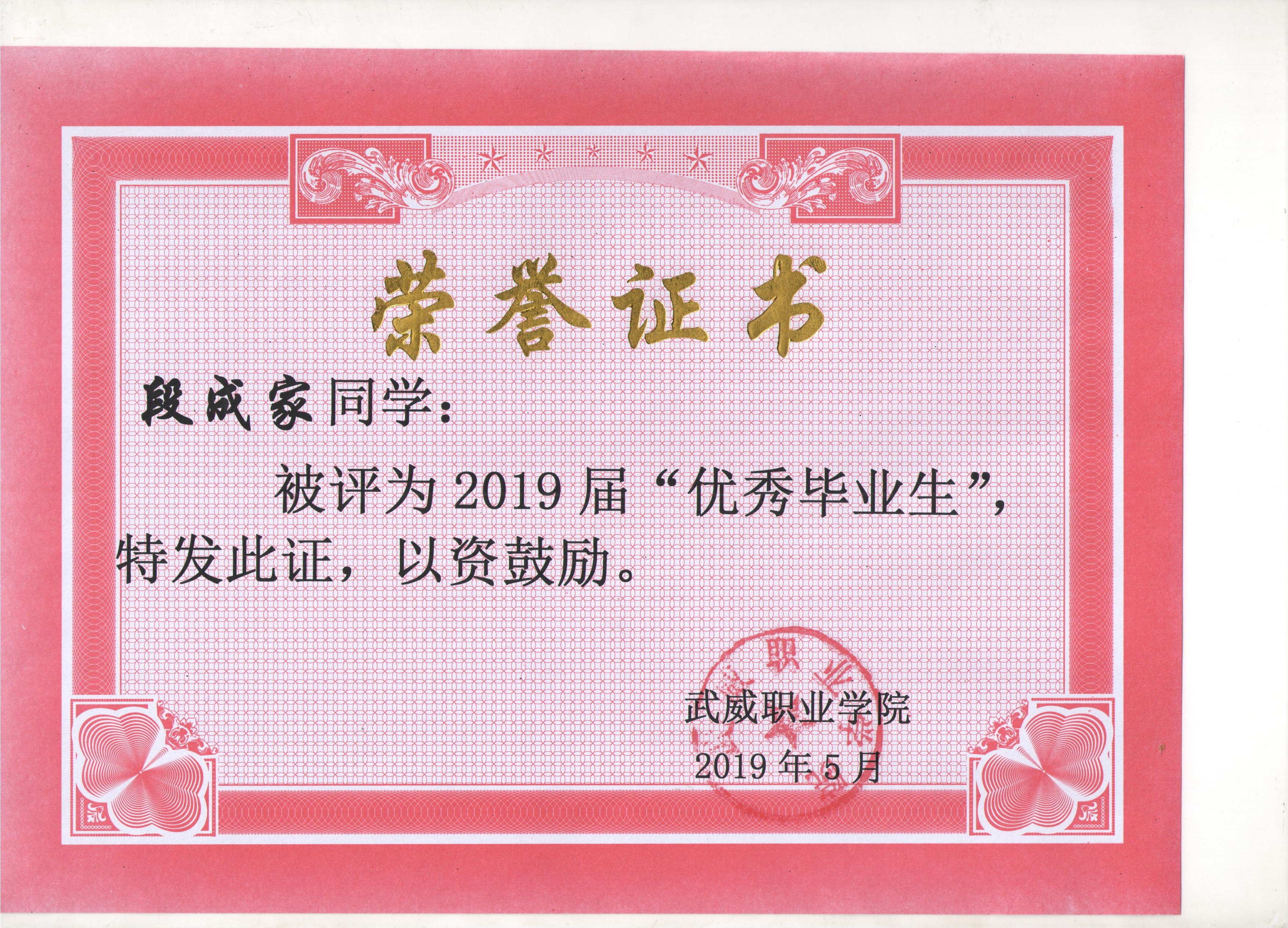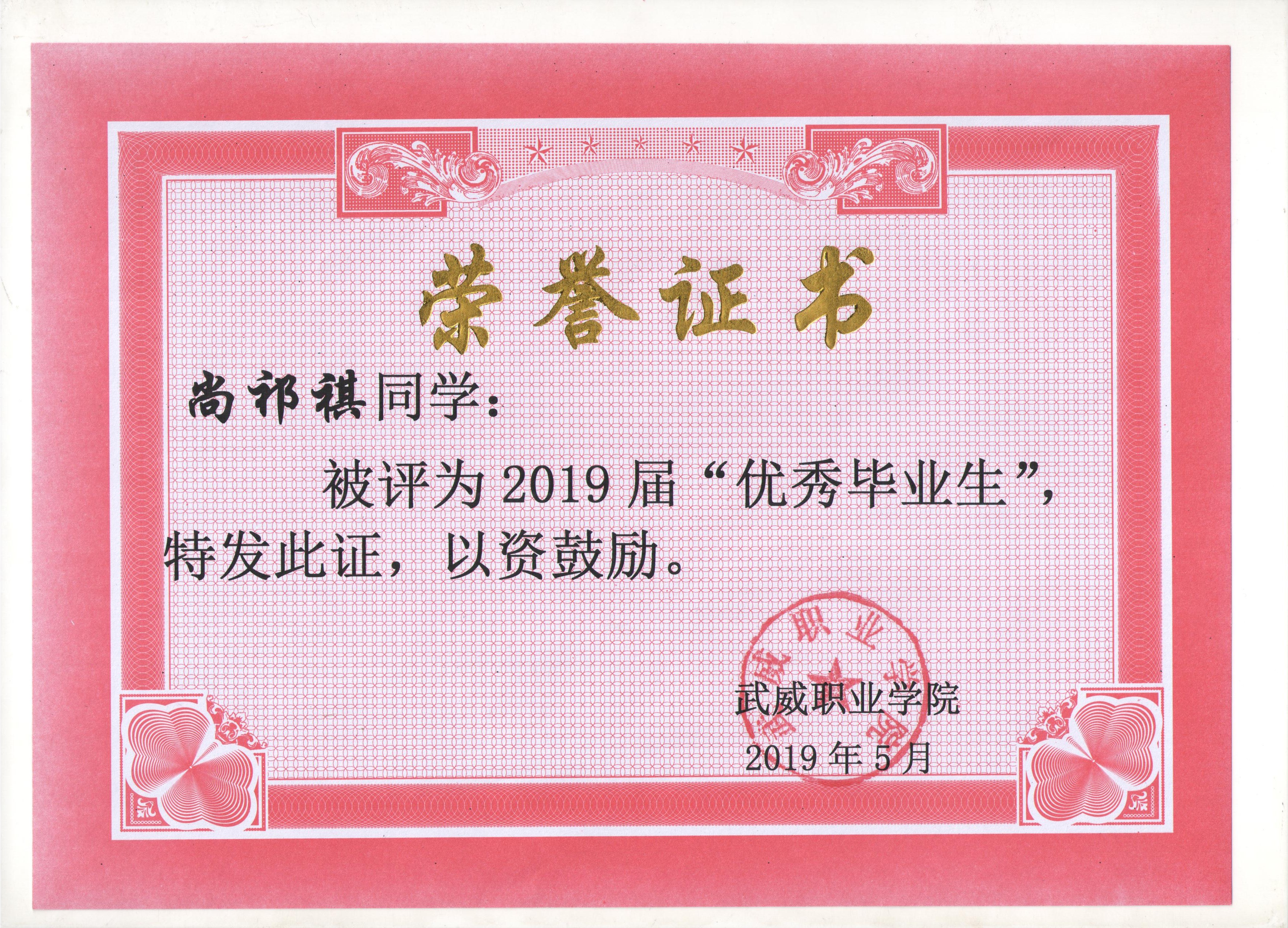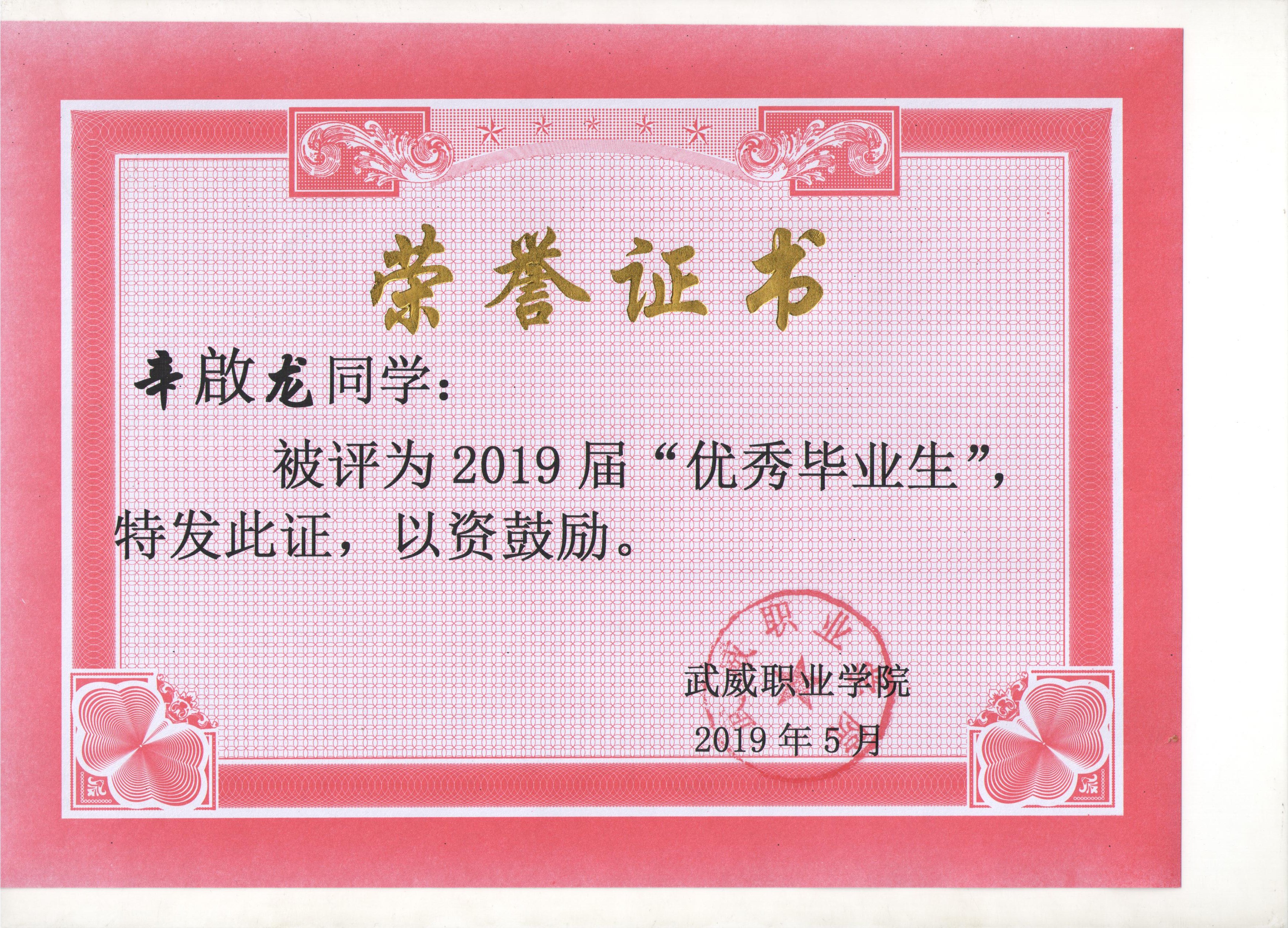 我系蔡少榮等19名同學(xué)榮獲武威職業(yè)學(xué)院2019屆“優(yōu)秀畢業(yè)生”榮譽(yù)稱號