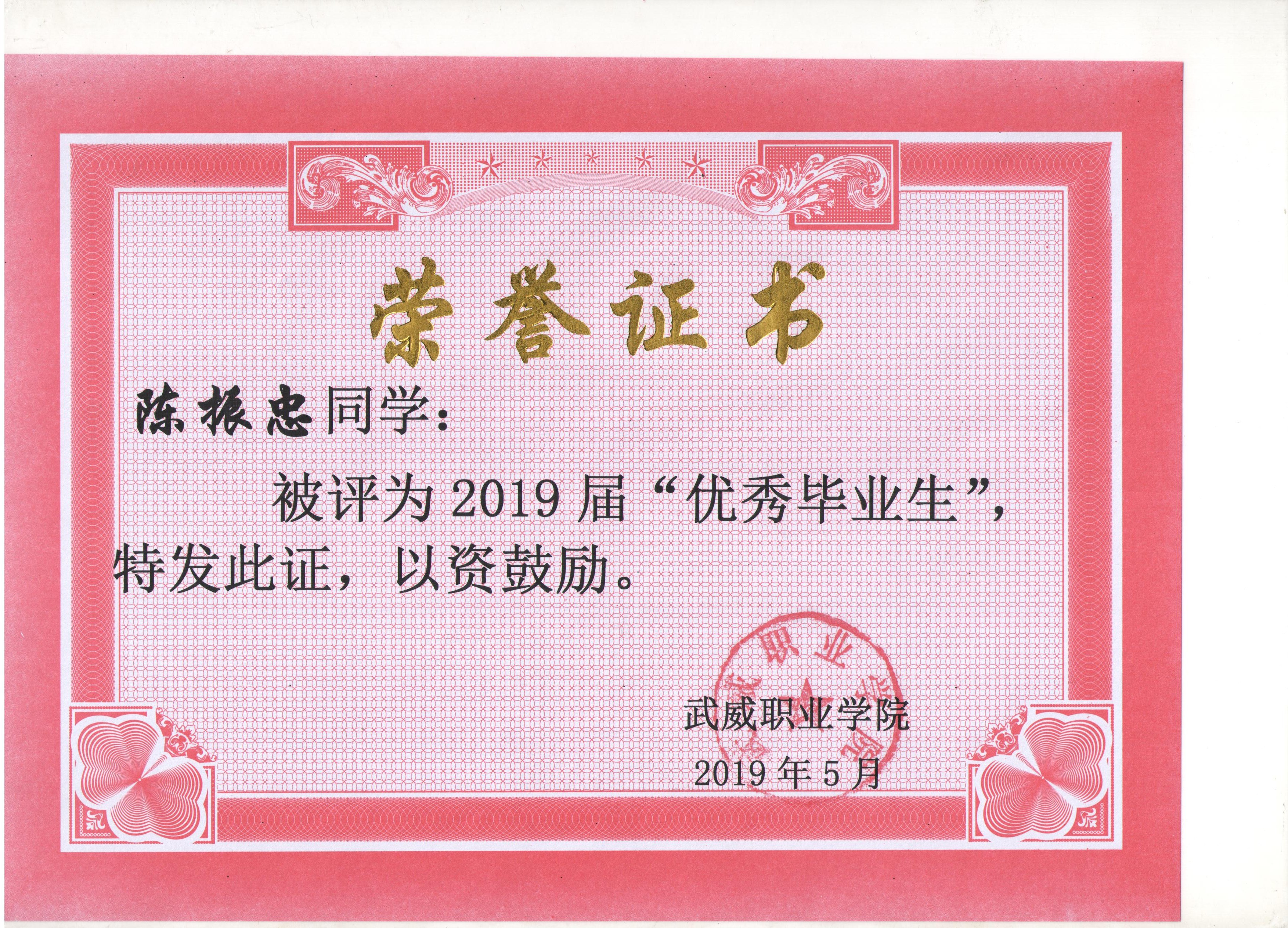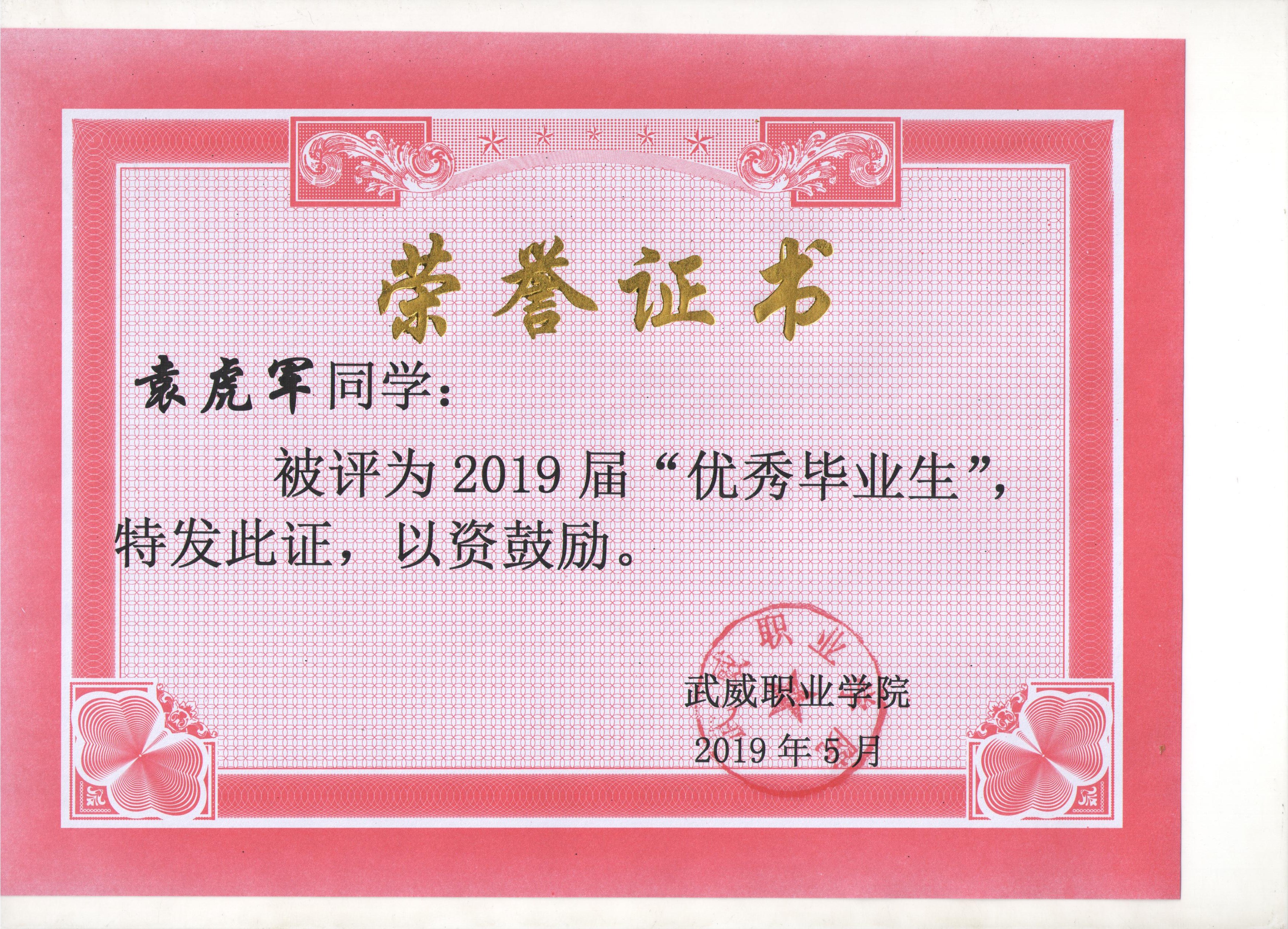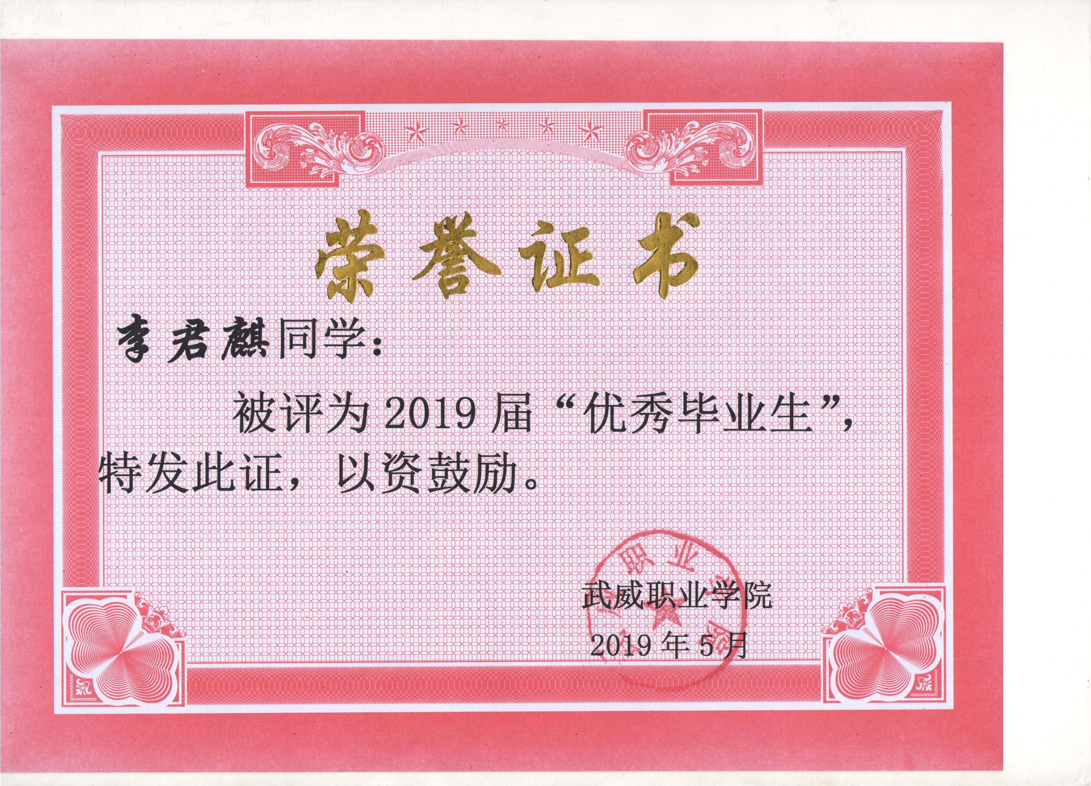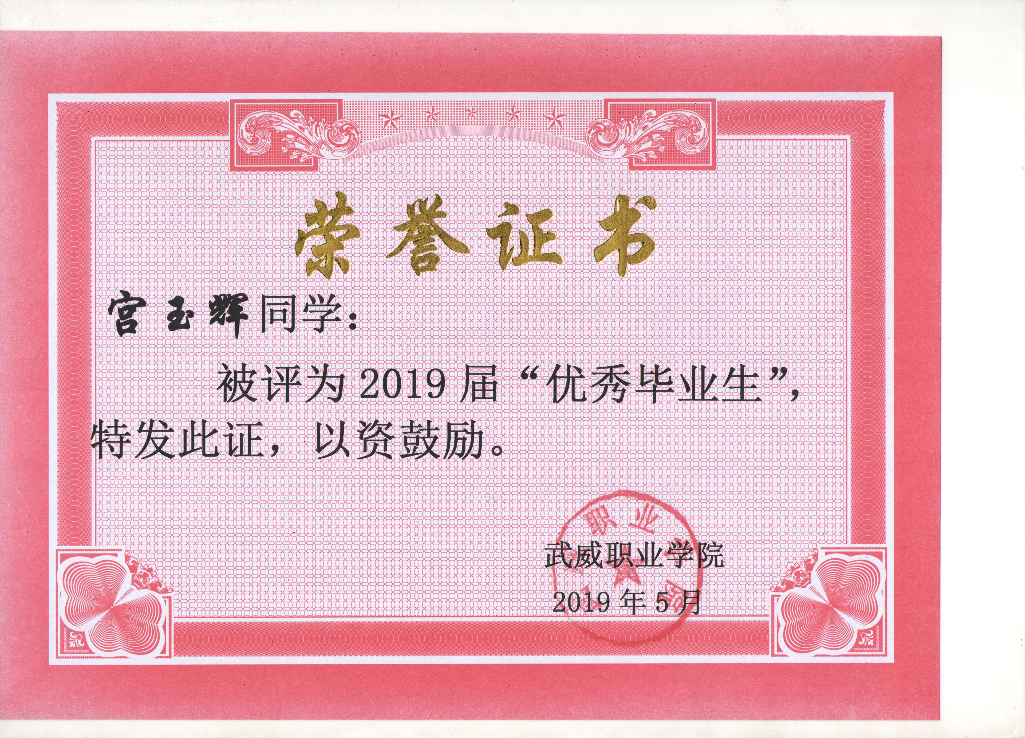 我系蔡少榮等19名同學(xué)榮獲武威職業(yè)學(xué)院2019屆“優(yōu)秀畢業(yè)生”榮譽(yù)稱號