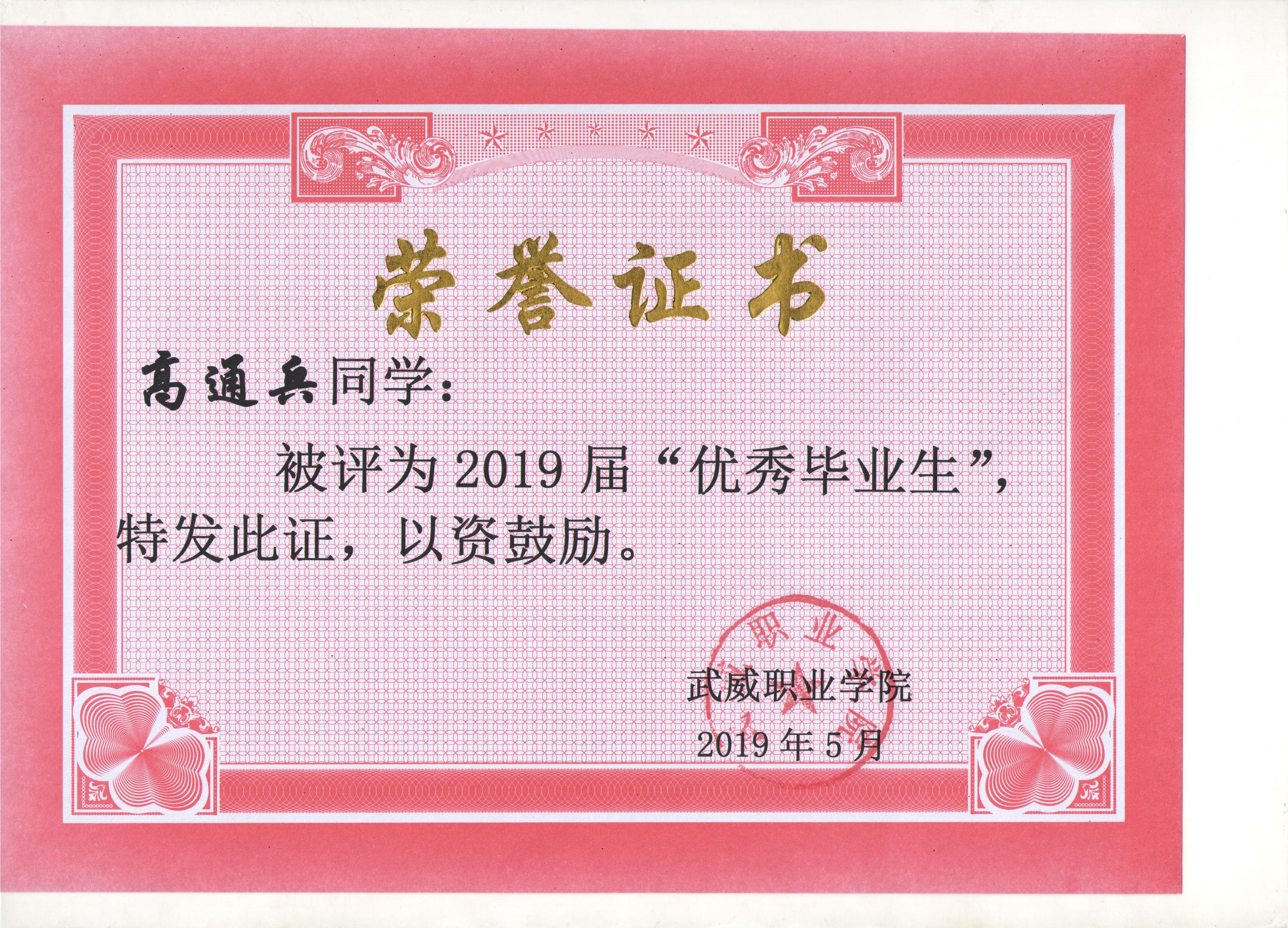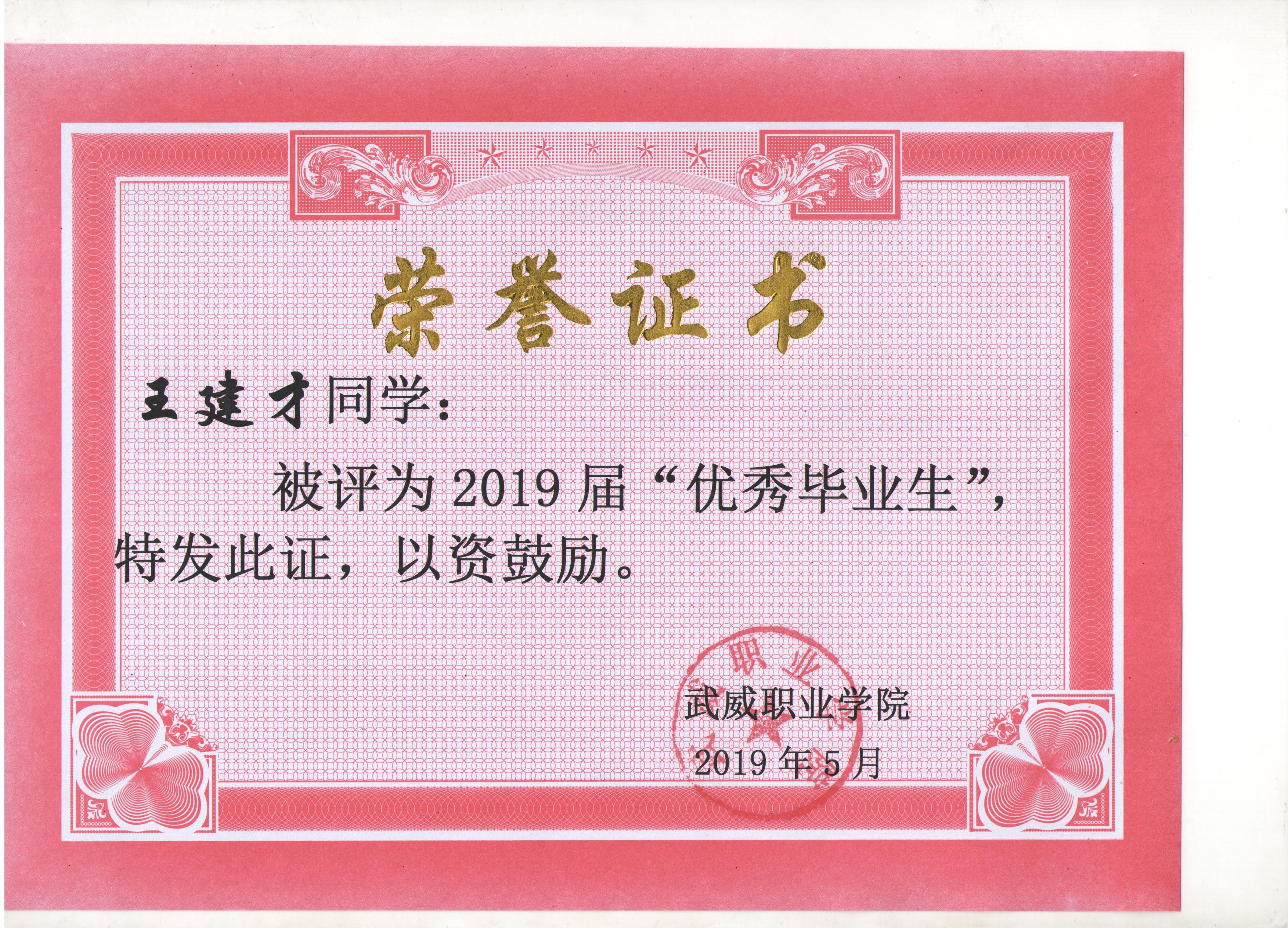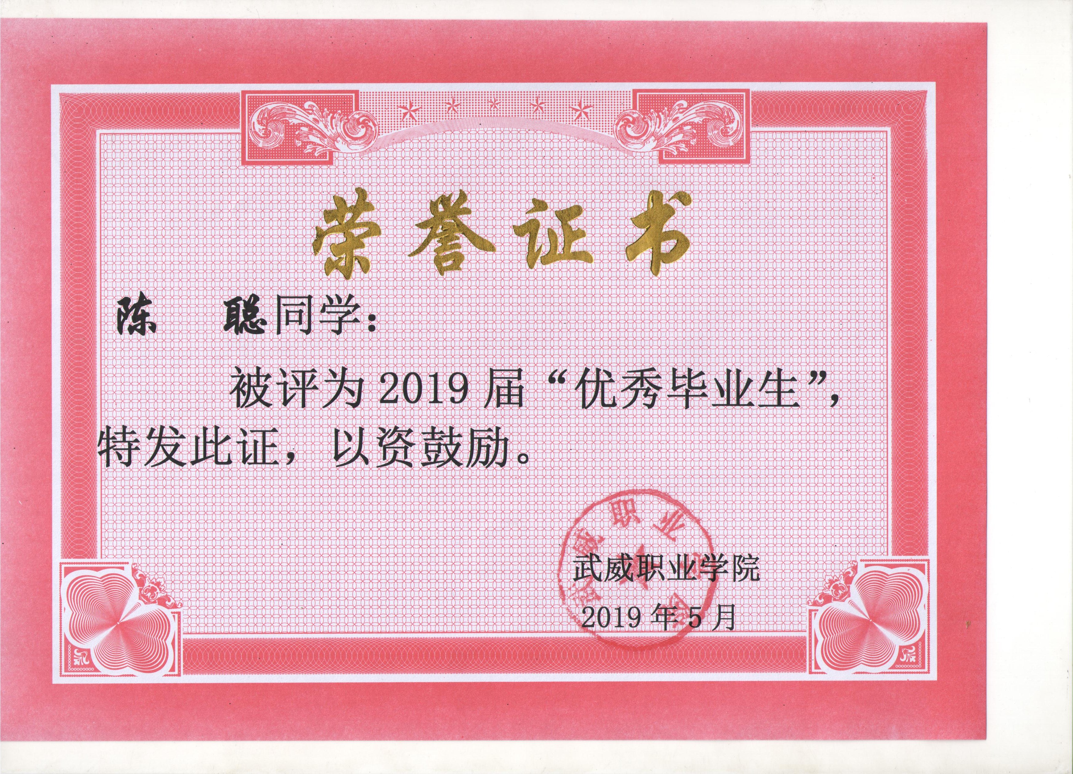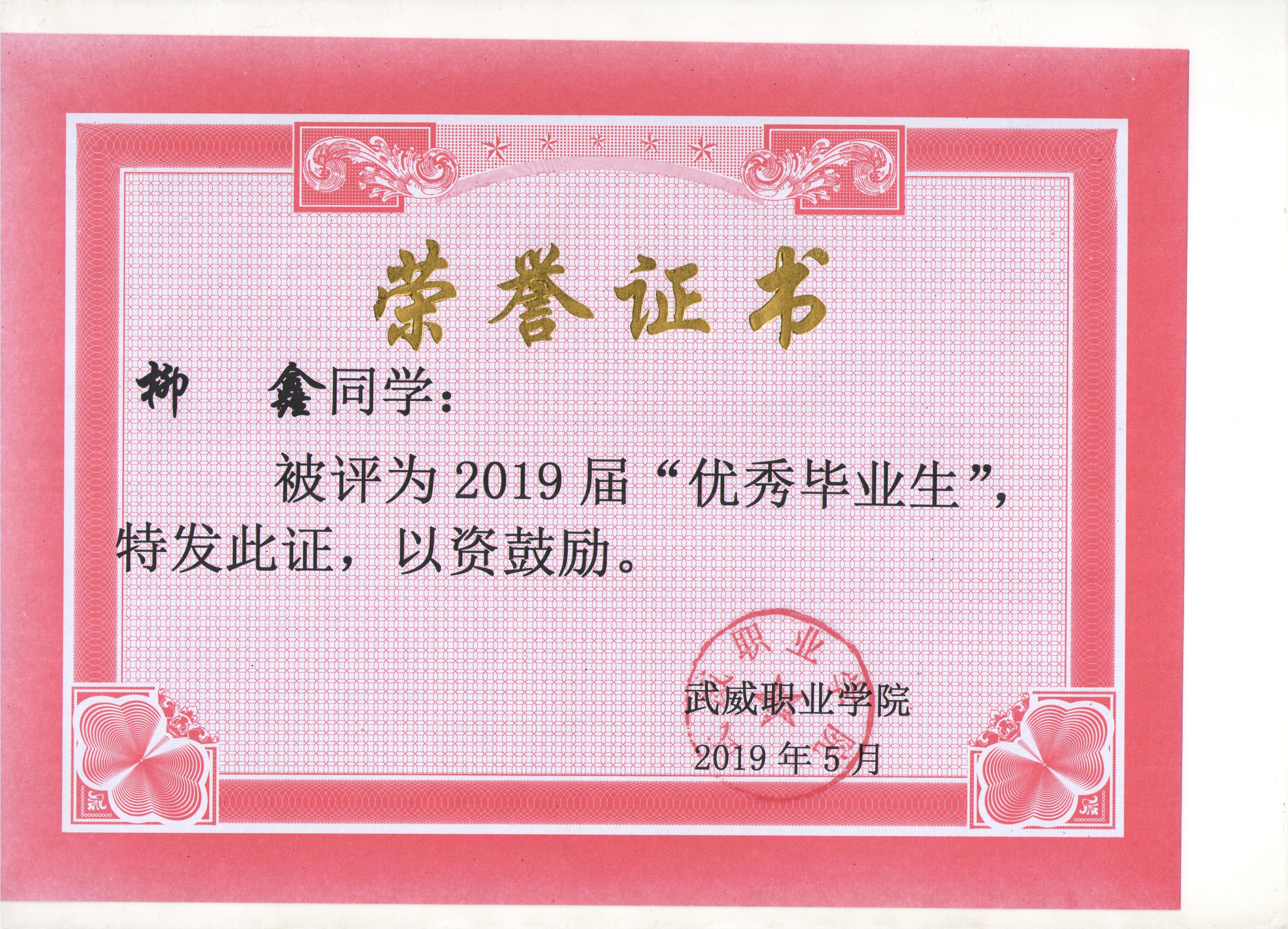 我系蔡少榮等19名同學(xué)榮獲武威職業(yè)學(xué)院2019屆“優(yōu)秀畢業(yè)生”榮譽(yù)稱號