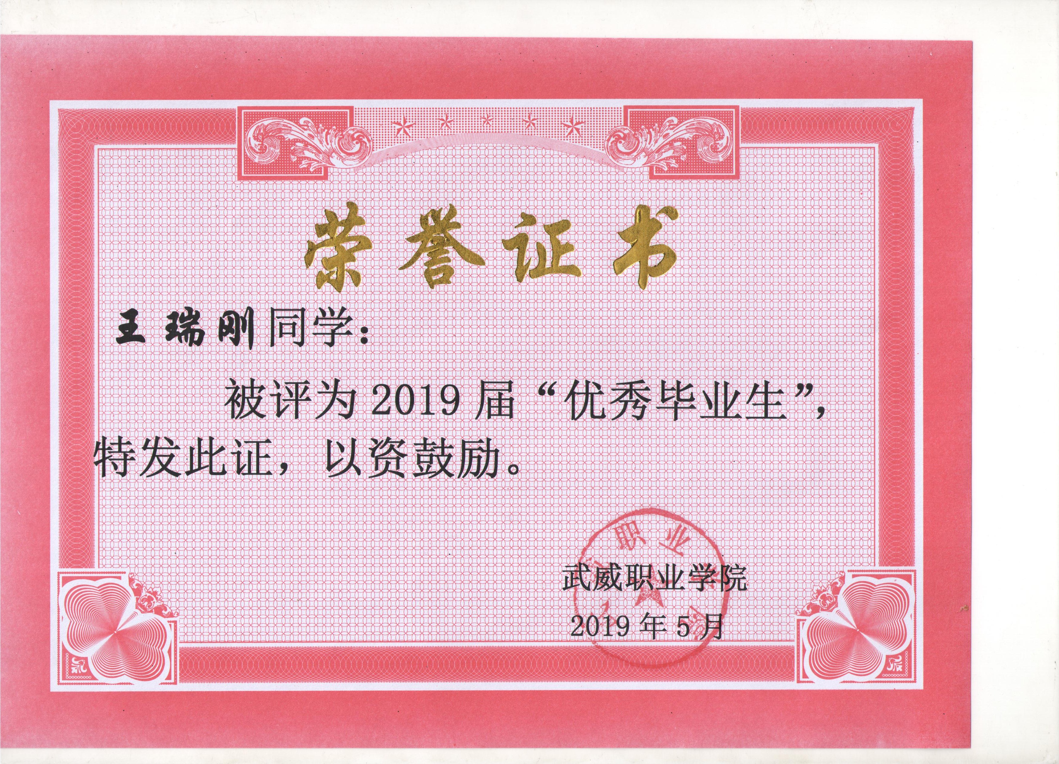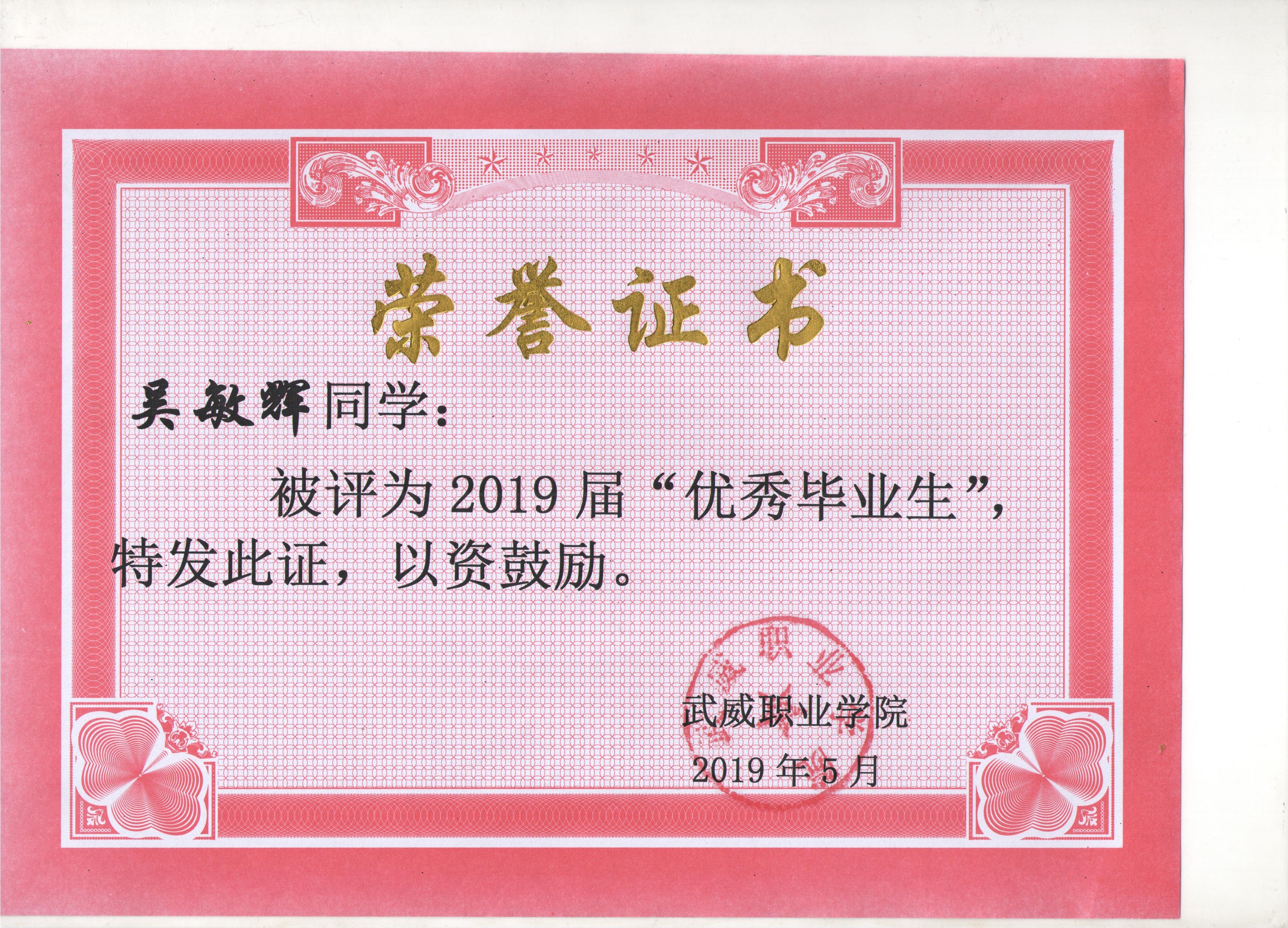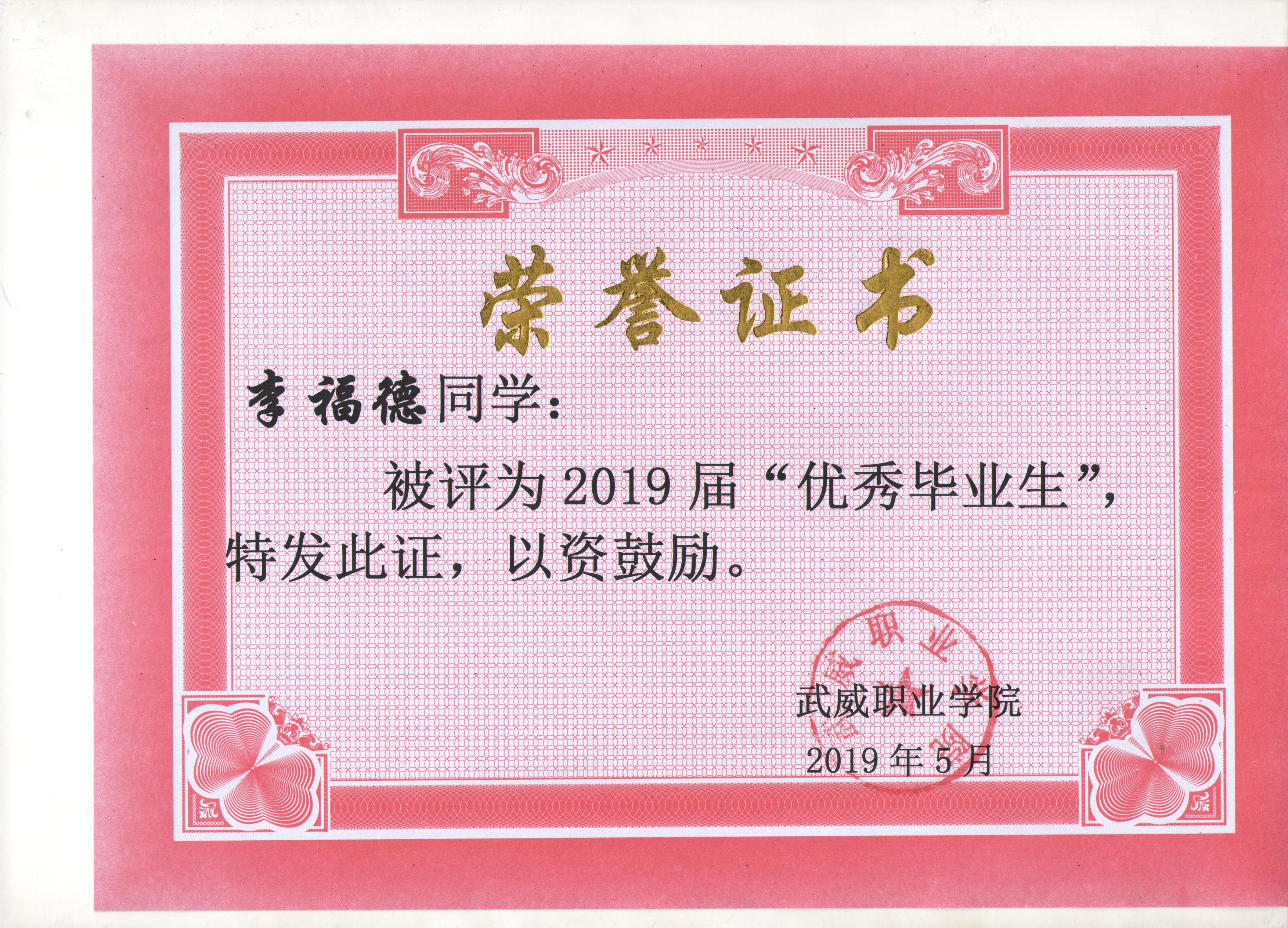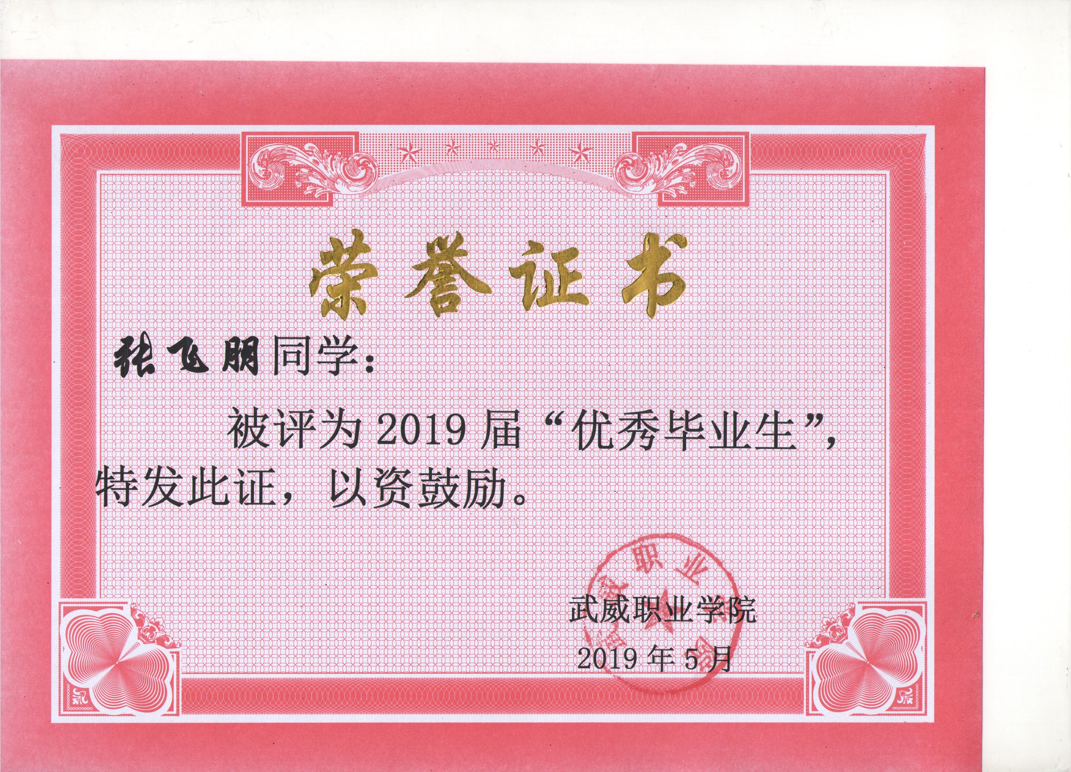 我系蔡少榮等19名同學(xué)榮獲武威職業(yè)學(xué)院2019屆“優(yōu)秀畢業(yè)生”榮譽(yù)稱號