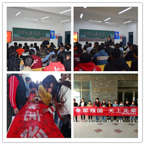 首先蔡海老師向同學(xué)們細(xì)致地講解了今年的征兵條件、報(bào)名方法及相關(guān)優(yōu)待政策,深入宣傳依法服兵役的積極意義,鼓勵(lì)適齡青年積極報(bào)名應(yīng)征,報(bào)效祖國。同時(shí)邀請2017級設(shè)施農(nóng)業(yè)與裝備大專班趙文文同學(xué)做了個(gè)人事跡匯報(bào)。該生曾在陸軍某部服役,現(xiàn)光榮退伍,回校就讀。交流中,他鼓勵(lì)同學(xué)們要敢于有夢、敢于追夢、敢于圓夢,讓青春在軍營的歷練中、在為祖國的奉獻(xiàn)中閃光。他還生動的講述了部隊(duì)的生活和訓(xùn)練情況,這段經(jīng)歷使他收獲了遠(yuǎn)大的理想信念,培養(yǎng)了良好的行為習(xí)慣,練就了強(qiáng)健的身體,這些將會讓他終身受益?;顒?/font>最后進(jìn)行了“參軍報(bào)國,無上光榮”主題簽名儀式。