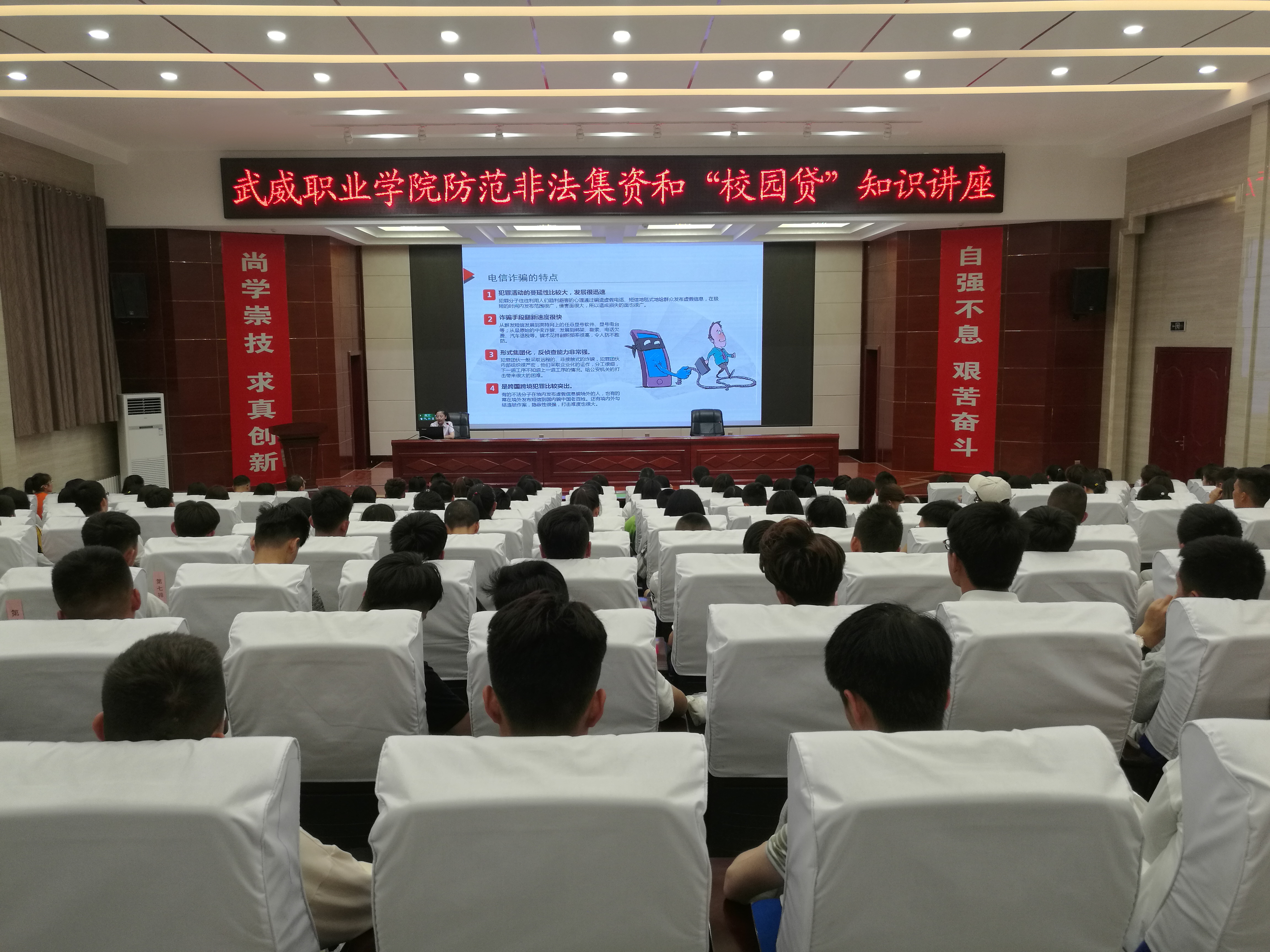 為深入貫徹落實(shí)甘肅省2019年防范非法集資和金融領(lǐng)域掃黑除惡宣傳月活動(dòng)的有關(guān)精神,保護(hù)廣大師生的合法權(quán)益。6月9日晚,學(xué)院邀請(qǐng)中國農(nóng)業(yè)銀行武威支行風(fēng)險(xiǎn)管理部工作人員朱琳在學(xué)院菁英廳作了關(guān)于防范非法集資和校園貸知識(shí)講座,學(xué)院副院長(zhǎng)王永緒出席活動(dòng),保衛(wèi)處、計(jì)劃財(cái)務(wù)處負(fù)責(zé)同志及各系師生代表200余人聆聽了講座。