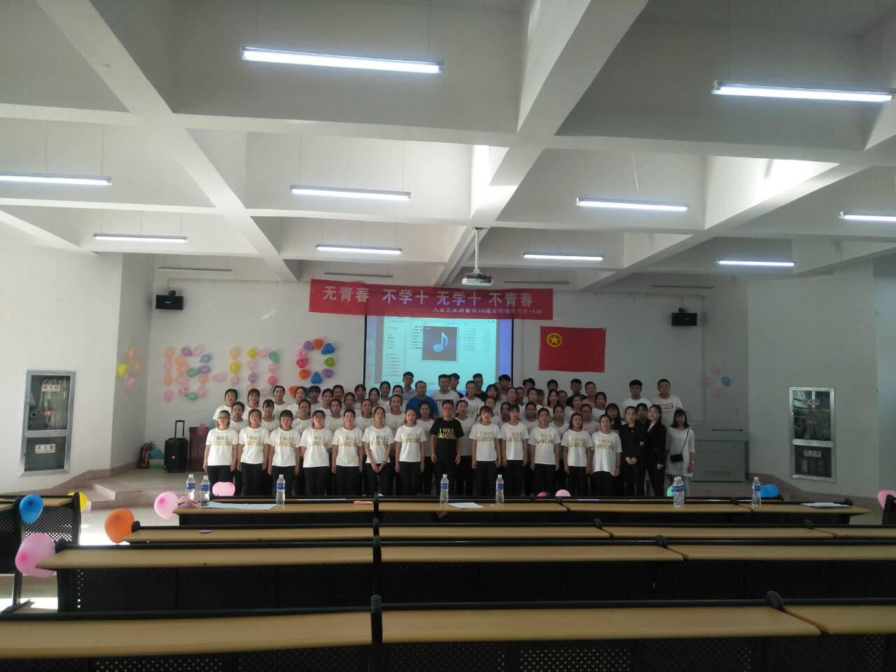 在激昂的歌曲中結(jié)束了本次團日活動,全體同學,老師以及各系主席拍照留念,這次活動帶動了同學的積極性,增強了同學們的集體榮譽感,活動圓滿結(jié)束,同學們?yōu)榇烁冻龅呐]有白費。體現(xiàn)出18學10是一個充滿活力的集體。