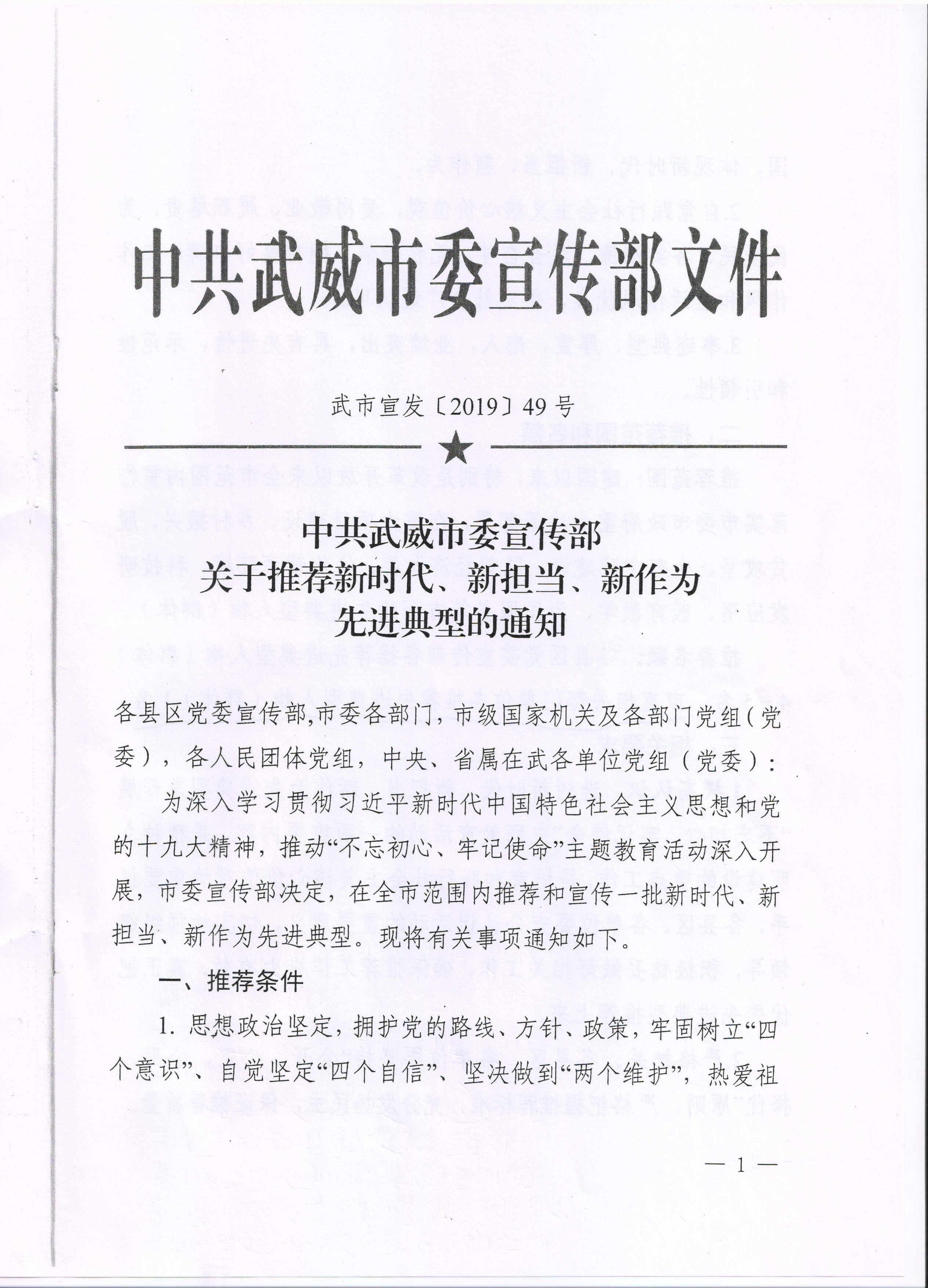 附件:《中共武威市委宣傳部關(guān)于推薦新時代、新?lián)?、新作為先進典型的通知》