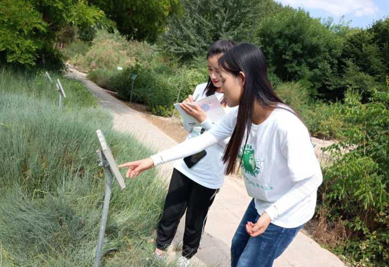 當天下午,全體實踐團成員前往民勤治沙綜合試驗站,參觀了民勤站的實驗設(shè)施和固沙技術(shù)示范區(qū),以及民勤沙生植物園。