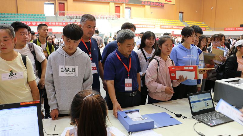 學(xué)院安排專車前往武威火車站、汽車站,為新生及家長(zhǎng)提供全天候接站服務(wù),并為送行家長(zhǎng)專設(shè)了休息區(qū)。安保人員指揮車輛有序停放,保障安全有序的校園環(huán)境。工作人員引導(dǎo)新生辦理入校手續(xù),報(bào)到、繳費(fèi)、入班、物品發(fā)放等各個(gè)環(huán)節(jié)有條不紊、高效暢通。體育館的電子屏上不斷播放學(xué)院宣傳片、大型公益短片,增強(qiáng)了新生及家長(zhǎng)對(duì)學(xué)院的了解、認(rèn)可和熱愛。為幫助家庭經(jīng)濟(jì)困難學(xué)生順利入學(xué),學(xué)院還設(shè)立了“綠色通道”服務(wù)點(diǎn),為家庭經(jīng)濟(jì)困難學(xué)生辦理緩交(減免)學(xué)費(fèi)和生源地信用助學(xué)貸款登記手續(xù)。