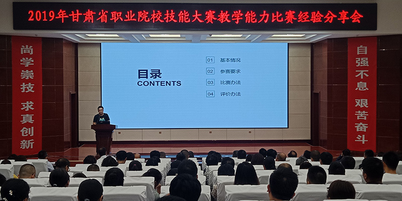 2019年全省職業(yè)院校技能大賽教學(xué)能力比賽于7月1日至7月5日在甘肅省交通職業(yè)技術(shù)學(xué)院舉行,學(xué)院6件作品23名教師參加比賽,并取得了優(yōu)異的成績。7月8日學(xué)院舉辦了比賽經(jīng)驗(yàn)分享會(huì),各相關(guān)部門、單位負(fù)責(zé)人、中青年骨干教師、兼職教師、教務(wù)處和項(xiàng)目辦相關(guān)人員共210多名教師參加。