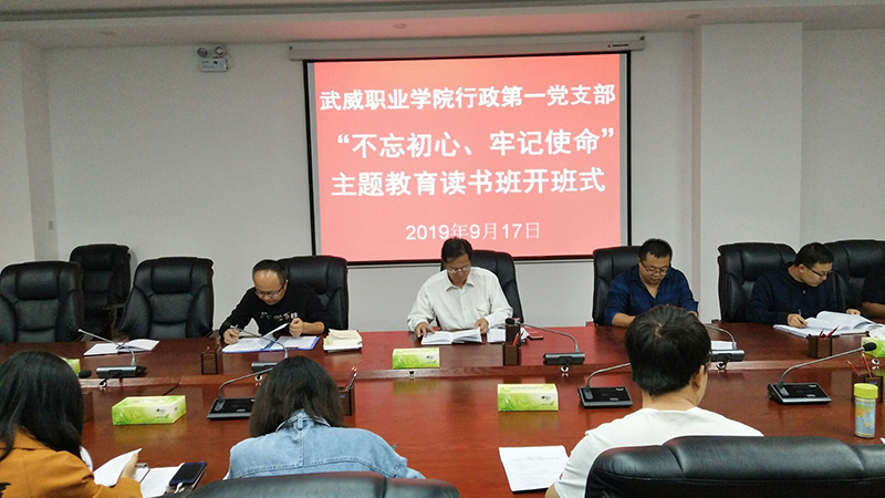 張開禮傳達了中共武威職業(yè)學院委員會印發(fā)《中共武威職業(yè)學院委員會關于開展“不忘初心、牢記使命”主題教育的實施方案》的通知、中共武威職業(yè)學院委員會關于開展“不忘初心、牢記使命”主題教育的通知、行政第一黨支部關于開展“不忘初心、牢記使命”主題教育的工作安排。