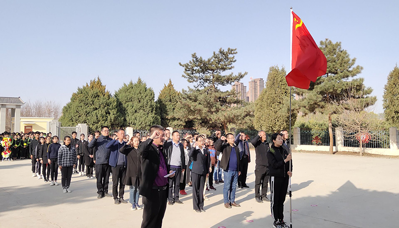 緬懷儀式上,大家肅立默哀,向長(zhǎng)眠于此的革命先烈鞠躬、敬獻(xiàn)花籃,表達(dá)對(duì)革命先烈哀思和崇高敬意,全體黨員在革命烈士墓前面向黨旗重溫了入黨誓詞,護(hù)理系教師黨支部書記韓曉萍在講話中指出戰(zhàn)爭(zhēng)年代造就了烈士們的堅(jiān)強(qiáng)與勇敢,和平年代的美好環(huán)境為我們提供了努力工作,奮發(fā)創(chuàng)業(yè)的機(jī)會(huì)。我們要嚴(yán)格按照學(xué)院黨委的要求,全面貫徹落實(shí)習(xí)近平新時(shí)代中國(guó)特色社會(huì)主義思想,增強(qiáng)“四個(gè)意識(shí)”、堅(jiān)定“四個(gè)自信”、做到“兩個(gè)維護(hù)”。同時(shí)希望同學(xué)們努力學(xué)習(xí),踐行社會(huì)主義核心價(jià)值觀,成為德智體美勞全面發(fā)展的社會(huì)主義建設(shè)者與接班人,為新中國(guó)成立70周年獻(xiàn)禮!