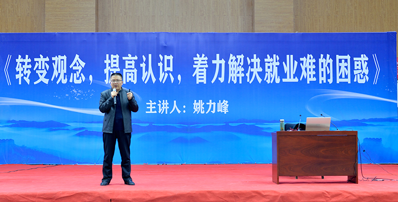 為貫徹2020屆全國(guó)普通高校畢業(yè)生就業(yè)創(chuàng)業(yè)工作網(wǎng)絡(luò)視頻會(huì)議精神,學(xué)院以習(xí)近平新時(shí)代中國(guó)特色社會(huì)主義思想為指導(dǎo),深入落實(shí)黨中央、國(guó)務(wù)院關(guān)于促進(jìn)高校畢業(yè)生就業(yè)創(chuàng)業(yè)的一系列重大決策部署,把畢業(yè)生就業(yè)工作擺在最突出位置,確保畢業(yè)生就業(yè)大局穩(wěn)定。12月14日上午,學(xué)院組織2020屆畢業(yè)生,在體育館參加了題為《轉(zhuǎn)變觀念,提高認(rèn)識(shí),著力解決就業(yè)難得困惑》的專家講座,引導(dǎo)畢業(yè)生轉(zhuǎn)變觀念、積極就業(yè)。講座由省人社廳人力資源市場(chǎng)檔案管理部部長(zhǎng)姚力峰主講,招生就業(yè)處副處長(zhǎng)董鵬主持。