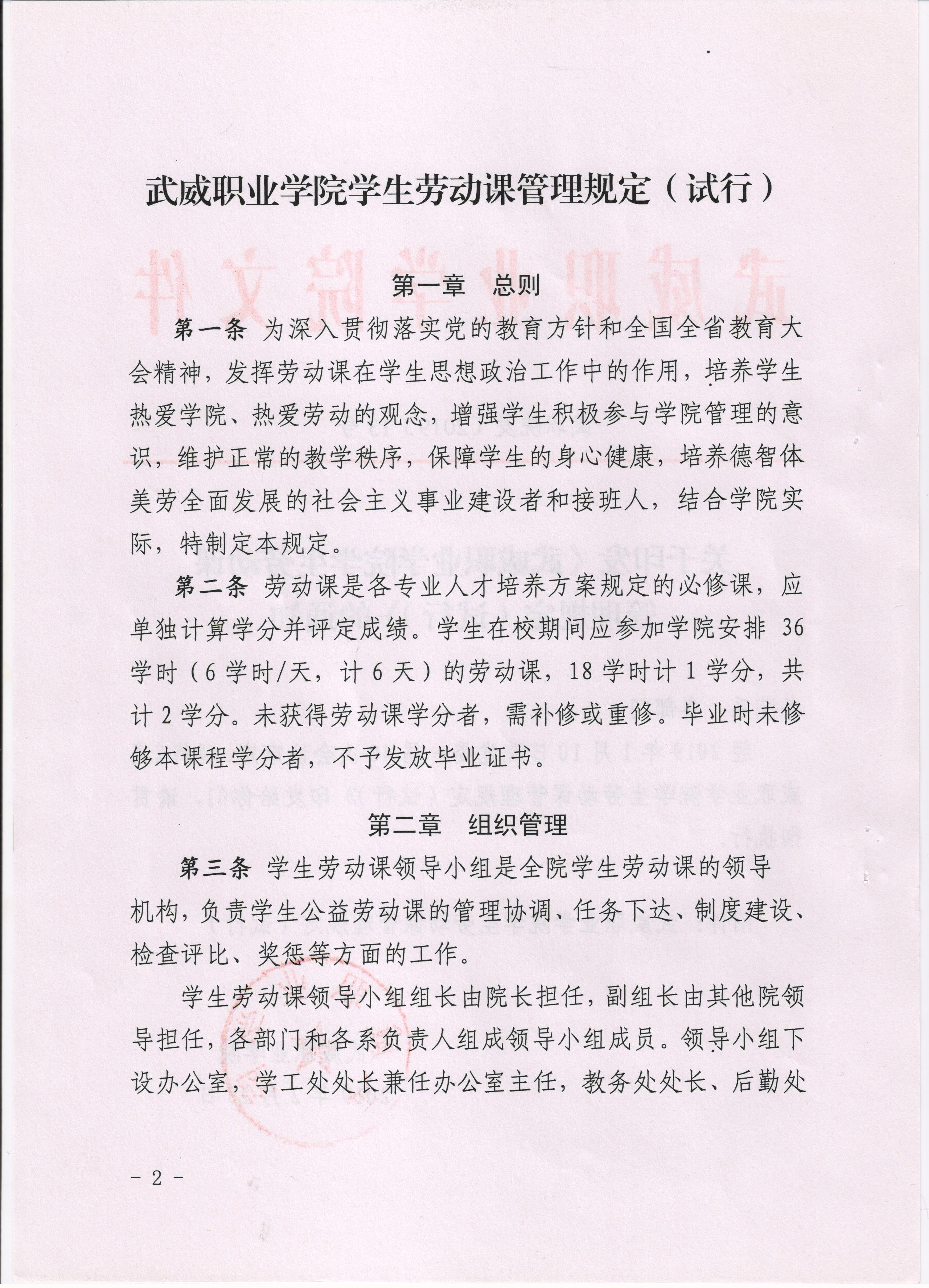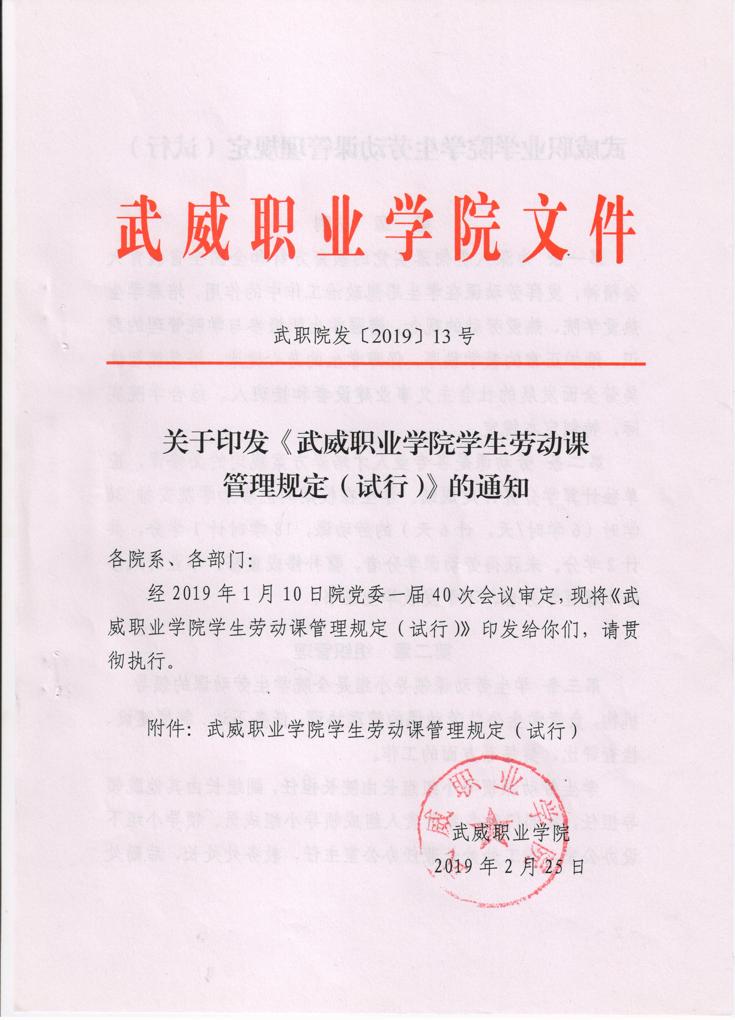 武威職業(yè)學(xué)院學(xué)生勞動課管理規(guī)定(試行)的通知