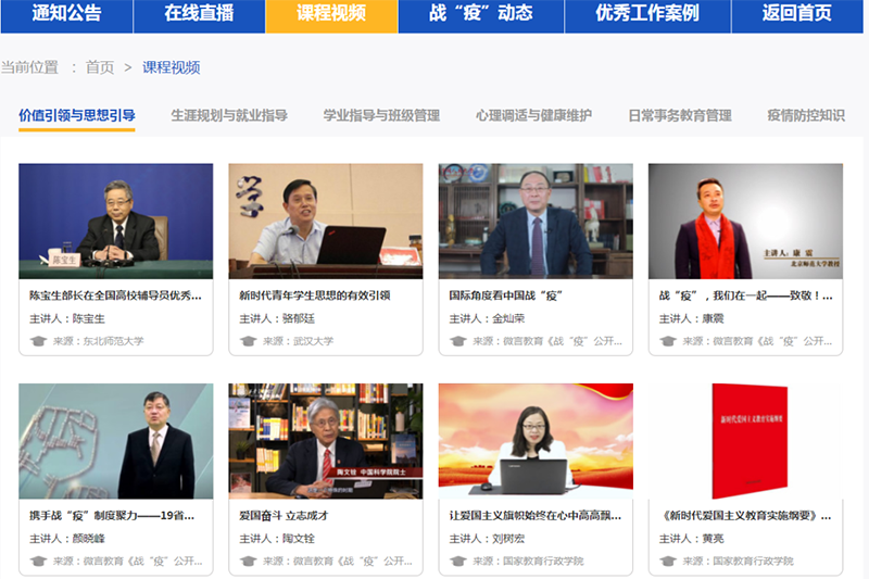 為推進當(dāng)前教育系統(tǒng)疫情防控和學(xué)生思想政治教育工作,由教育部主辦,高校思想政治工作隊伍培訓(xùn)研修中心承辦的“共抗疫情顯擔(dān)當(dāng),愛國力行育新人”全國高校輔導(dǎo)員網(wǎng)絡(luò)培訓(xùn)示范班開班。