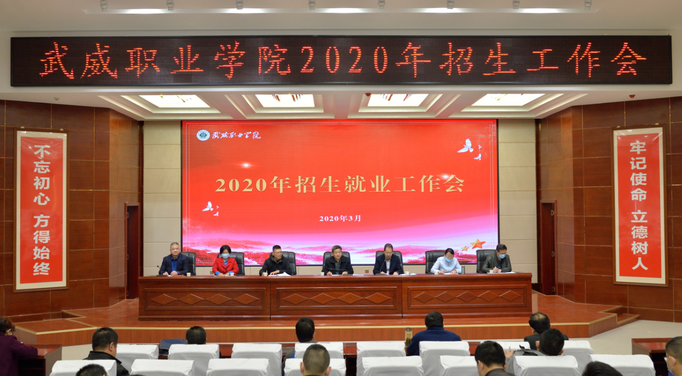 根據(jù)2020屆全國(guó)普通高校畢業(yè)生就業(yè)創(chuàng)業(yè)工作網(wǎng)絡(luò)視頻會(huì)議精神和省教育廳2020年全省高等職業(yè)教育招生考試會(huì)議精神,3月30日下午,學(xué)院在菁英廳召開(kāi)2020年招生就業(yè)工作會(huì)議。黨委書(shū)記、院長(zhǎng)趙明,副院長(zhǎng)王永緒、田迎春、何毅、張開(kāi)禮、王守云出席會(huì)議,各部門(mén)、單位負(fù)責(zé)人和各院系輔導(dǎo)員及招就處工作人員,共80余人參加了會(huì)議。會(huì)議由黨委副書(shū)記翟存祥主持。