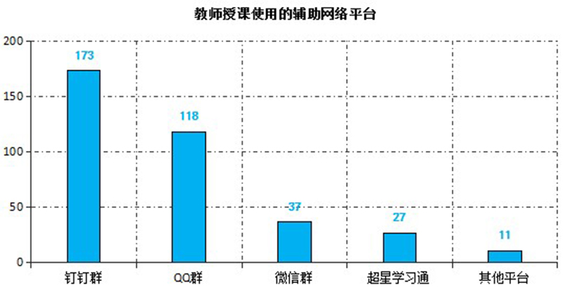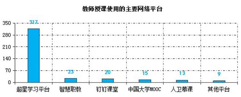 截止3月6日,教師使用武威職業(yè)學(xué)院在線(xiàn)教學(xué)平臺(tái)建設(shè)在線(xiàn)課程226門(mén),使用超星學(xué)習(xí)通開(kāi)展教學(xué)317次,釘釘課堂30次,智慧職教23次,中國(guó)大學(xué)MOOC15次,人衛(wèi)慕課13次,其他平臺(tái)9次。任課教師還選用釘釘群、QQ群或微信群等作為課程輔助交流平臺(tái)實(shí)施教學(xué)組織與管理。在線(xiàn)教學(xué)過(guò)程中,除開(kāi)始時(shí)部分時(shí)段因同時(shí)在線(xiàn)人數(shù)過(guò)多導(dǎo)致網(wǎng)絡(luò)波動(dòng)外,其他時(shí)間教學(xué)平臺(tái)均能穩(wěn)定運(yùn)行,較好的保障了在線(xiàn)教學(xué)的順利實(shí)施。