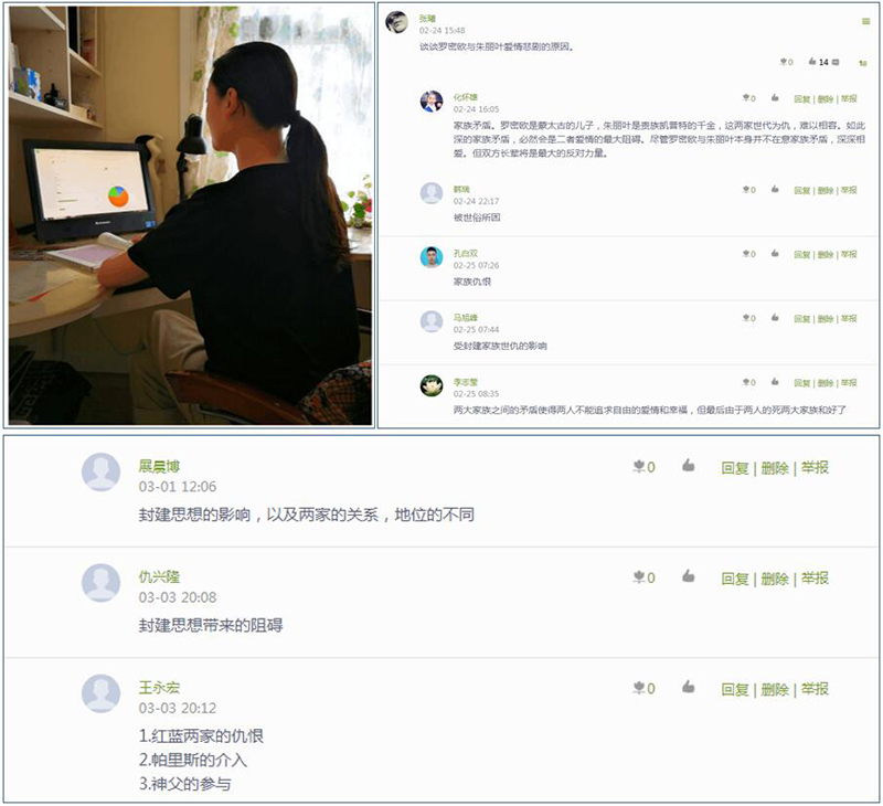 人文藝術(shù)教育系共有34名教師實(shí)施在線(xiàn)教學(xué),開(kāi)設(shè)在線(xiàn)課程20門(mén)。其中,利用武威職業(yè)學(xué)院在線(xiàn)教學(xué)平臺(tái)建設(shè)課程18門(mén),上課學(xué)生1487人。教師充分利用釘釘群、QQ群組織學(xué)生開(kāi)展課前預(yù)習(xí)、主題討論、隨堂測(cè)驗(yàn)、作業(yè)布置等各類(lèi)線(xiàn)上教學(xué)活動(dòng),充分調(diào)動(dòng)學(xué)生的學(xué)習(xí)主動(dòng)性,絕大多數(shù)學(xué)生參與性好,討論環(huán)節(jié)互動(dòng)積極性高,能按時(shí)完成作業(yè)并提交;任課教師能夠認(rèn)真解答學(xué)生疑問(wèn),能及時(shí)完成作業(yè)批閱和反饋,學(xué)生滿(mǎn)意度較高。
