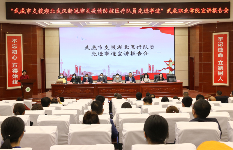 為深入學(xué)習(xí)援鄂醫(yī)療隊先進(jìn)事跡,弘揚(yáng)愛國奮斗精神,5月23日下午,學(xué)院邀請武威市參加支援湖北武漢新冠肺炎疫情防控醫(yī)療隊員中的優(yōu)秀代表在大學(xué)生活動中心菁英廳作先進(jìn)事跡宣講報告。