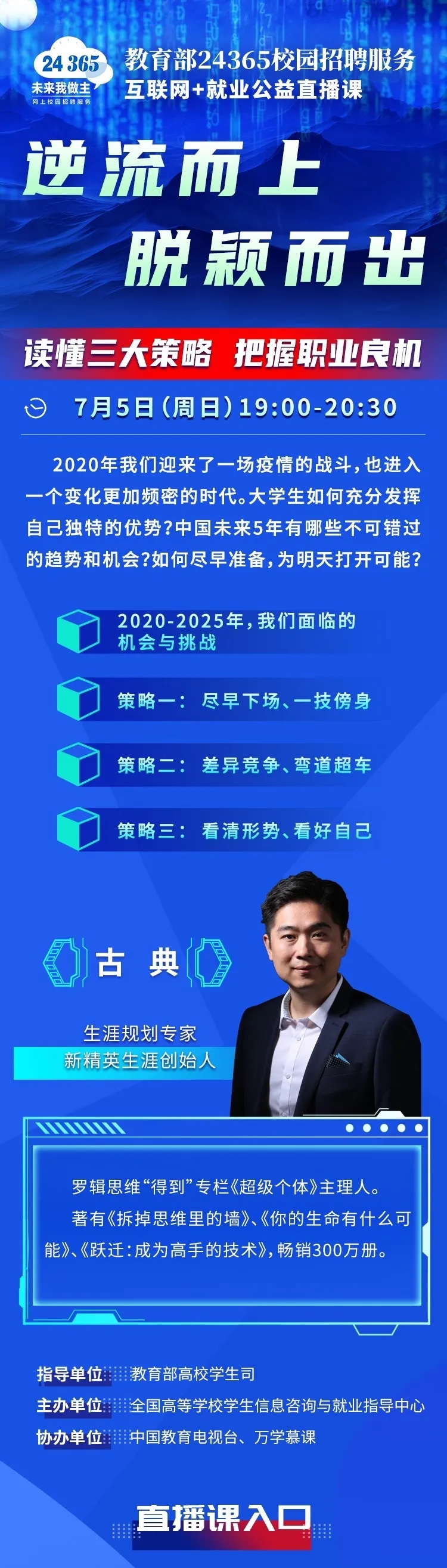 教育部24365就業(yè)公益課程:逆流而上 脫穎而出——讀懂三大策略,把握職業(yè)良機(jī)