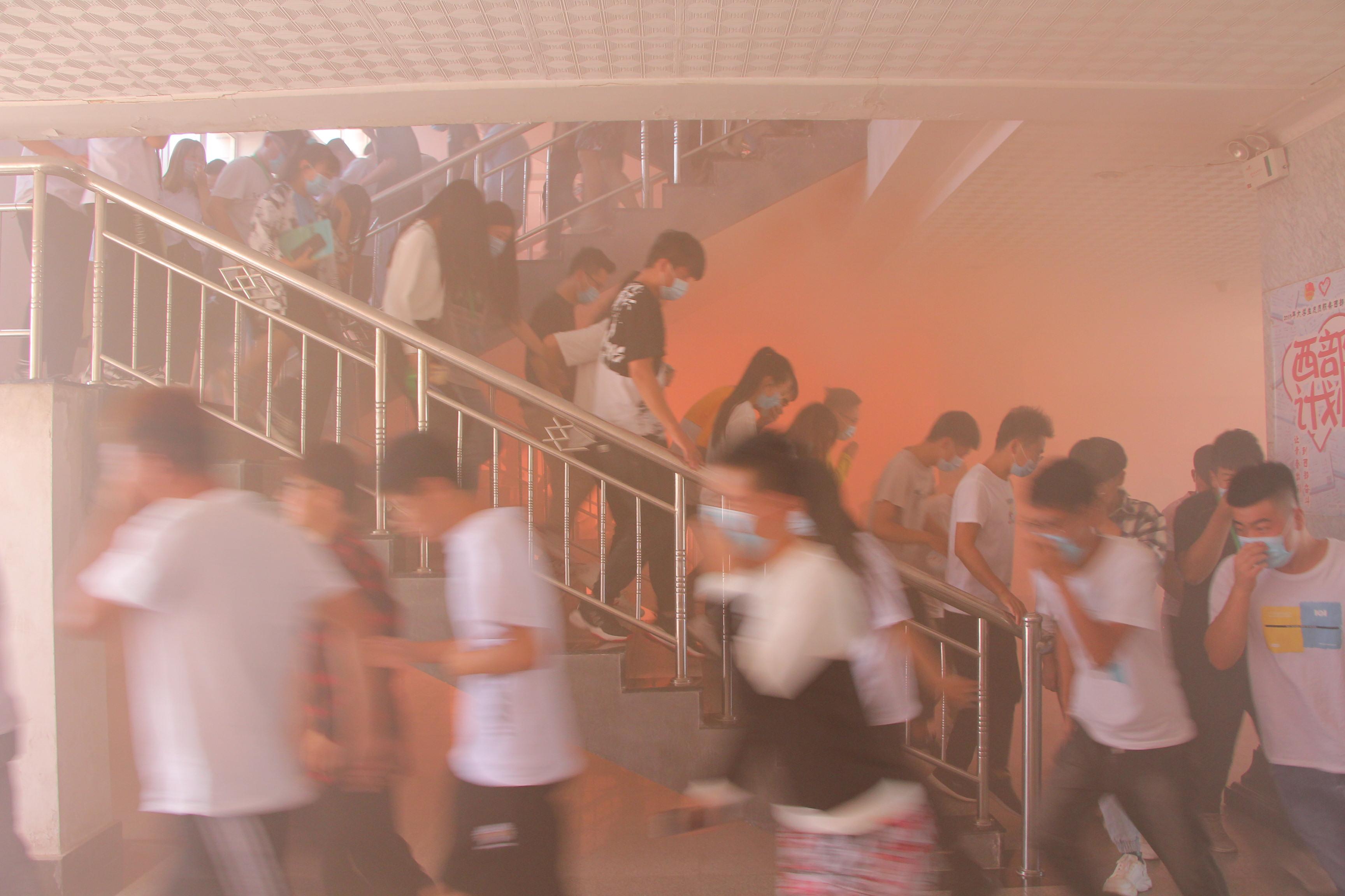 下午4點(diǎn)46分,疏散演練正式開(kāi)始。隨著消防警報(bào)響起,各教學(xué)班上課教師立即停止上課組織學(xué)生疏散,學(xué)生用濕毛巾捂住口鼻,按照逃生路線有序疏散。在3分鐘內(nèi),6000多名參演師生全部撤離到了安全地帶,演練取得圓滿成功。