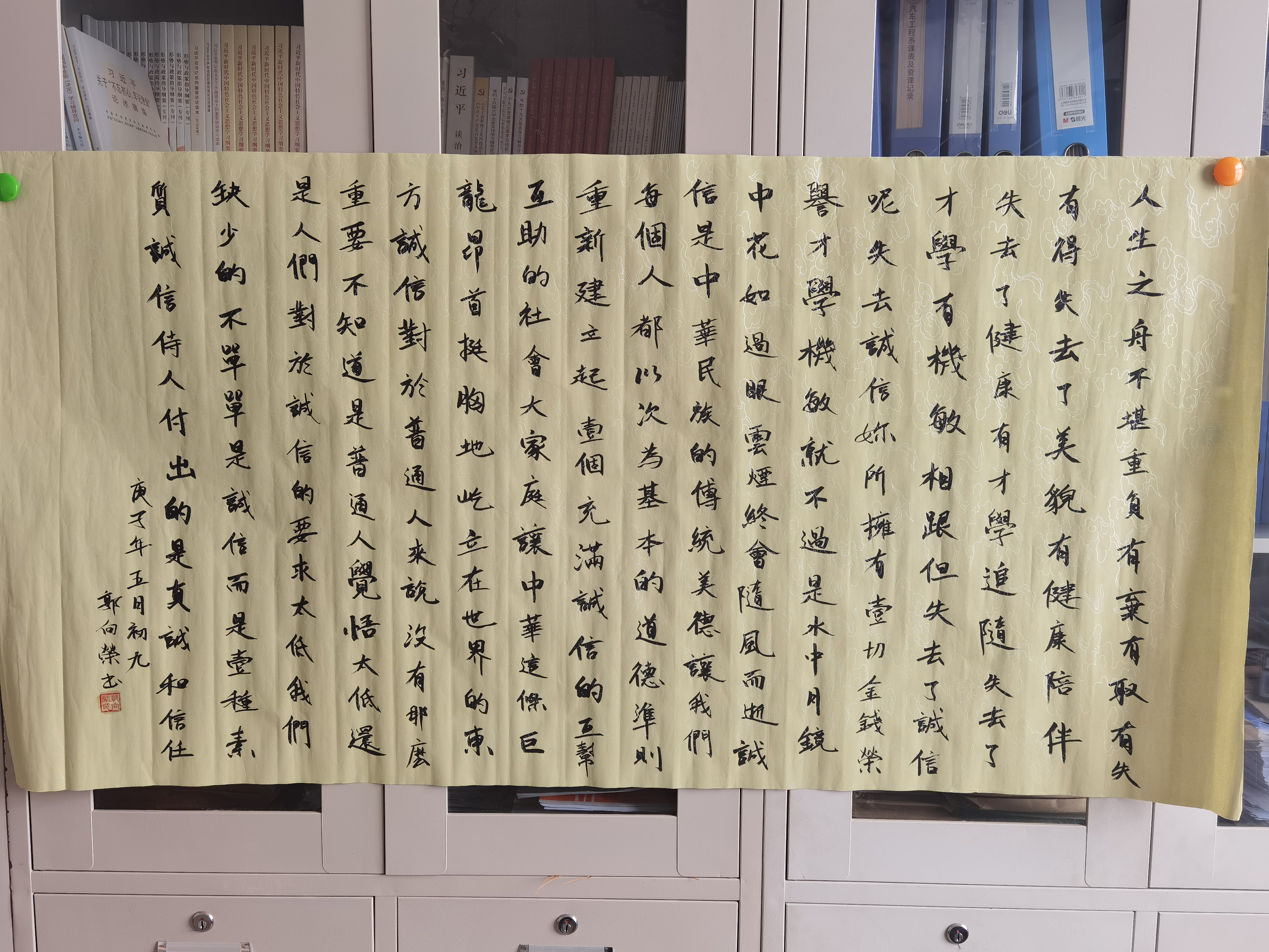 ? ? 為響應(yīng)學(xué)院“以誠(chéng)至信、受益終生、誠(chéng)信還貸 、感恩社會(huì)”倡議書倡議,汽車工程系于6月14日舉辦為期一周的“誠(chéng)信”主題書畫比賽,學(xué)生踴躍參賽,經(jīng)過(guò)學(xué)生會(huì)評(píng)審,最終確定推薦5件作品參加學(xué)院比賽。