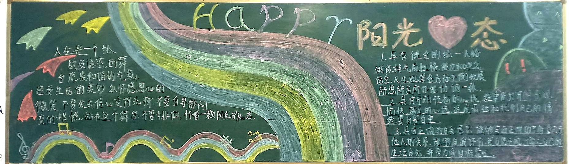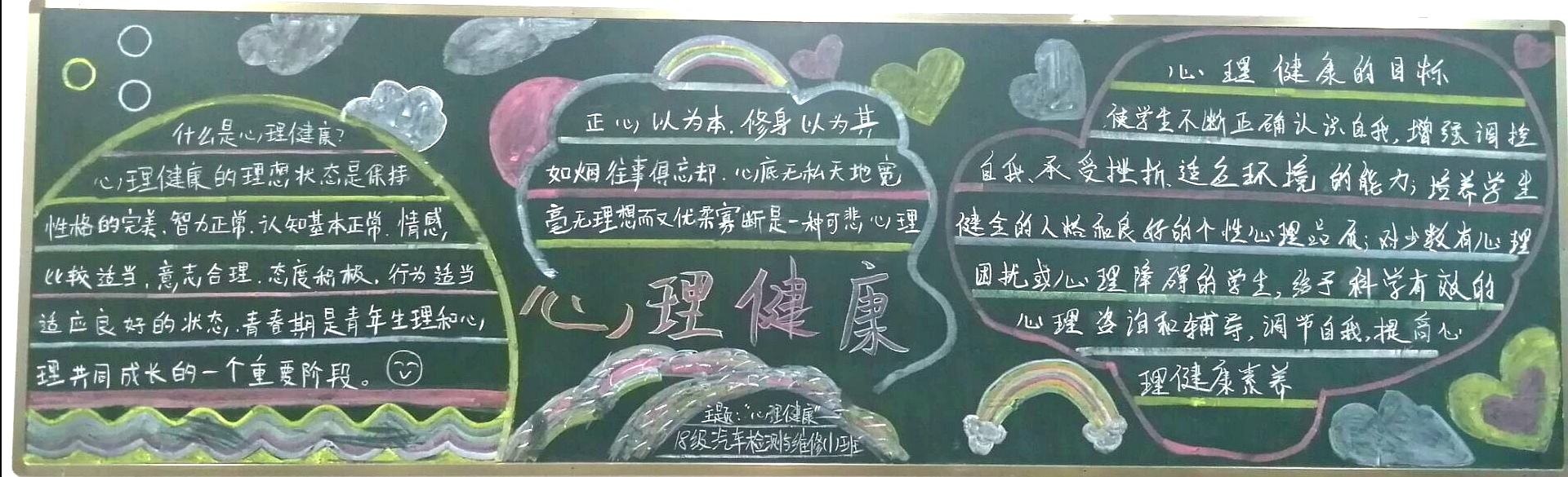 為進(jìn)一步提高大學(xué)生的心理素質(zhì),促進(jìn)大學(xué)生的身心健康和諧,宣傳普及心理健康知識(shí),深入開(kāi)展心理健康教育,我系結(jié)合學(xué)院特點(diǎn),突出專(zhuān)業(yè)優(yōu)勢(shì),在積極承擔(dān)和參與學(xué)校心理健康活動(dòng)月的團(tuán)日活動(dòng)的同時(shí),各班開(kāi)展了豐富多彩的以“心理健康”為主題的黑板報(bào)。