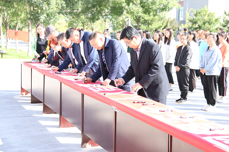 參會領(lǐng)導(dǎo)及師生就“網(wǎng)絡(luò)安全,人人有責,文明上網(wǎng),從我做起”進行集體簽名。