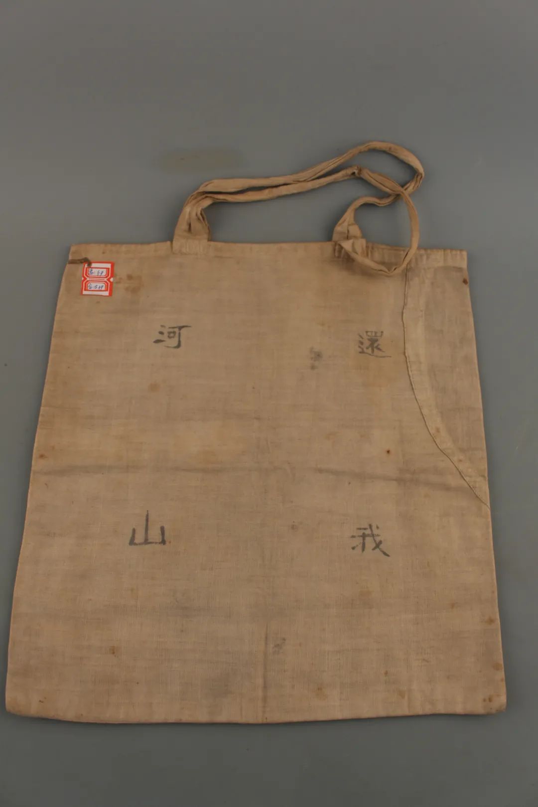 “還我河山”,車(chē)向忱夫婦用過(guò)的手提兜上,四個(gè)字依然清晰?!熬乓话恕笔伦兒?,東北淪陷,教育家車(chē)向忱多次往返關(guān)內(nèi)外,積極組織抗日救亡運(yùn)動(dòng),還創(chuàng)辦了許多平民學(xué)校。這個(gè)手提兜原為白色,歷經(jīng)歲月和戰(zhàn)火,現(xiàn)已陳舊發(fā)黃。布兜正面繡有黑色“收復(fù)東北失地,1938”字樣,背面寫(xiě)有“還我河山”字樣。