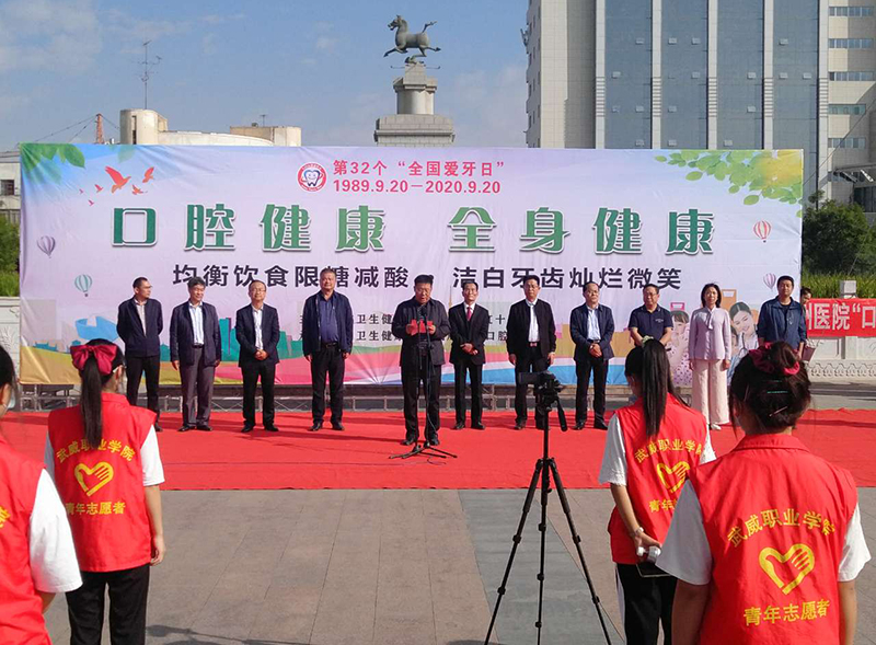 2020年9月20日是第32個“全國愛牙日”,為進一步普及口腔健康知識,結合今年全國愛牙日“口腔健康,全身健康”的主題,9月20日上午,由武威市衛(wèi)生健康委員會、武威市紅十字協(xié)會牽頭在文化廣場組織開展了“9.20全國愛牙日”主題宣傳活動。學院黨委委員、副院長王守云、醫(yī)學技術與信息管理系黨總支書記黃文源及醫(yī)學技術與信息管理系100多名口腔醫(yī)學技術專業(yè)學生參加了志愿服務活動。
