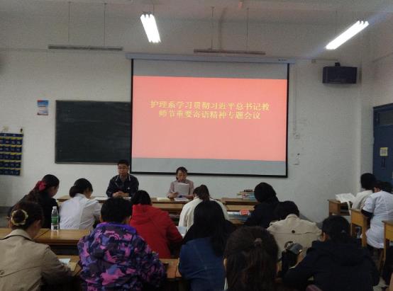 會上,護理系主任韓曉萍領學了《習近平總書記教育重要論述講義》,重溫了總書記教師節(jié)重要寄語及精神。她指出,全體教職員工要牢記習近平總書記“不忘立德樹人初心,牢記為黨育人、為國育才使命”的責任擔當,積極探索,在教書育人的崗位上不斷作出新的重大貢獻。她要求,每位教職員工撰寫一篇學習心得體會,提高認識,牢記使命,立足實際,為黨和國家培育社會主義建設者和接班人。